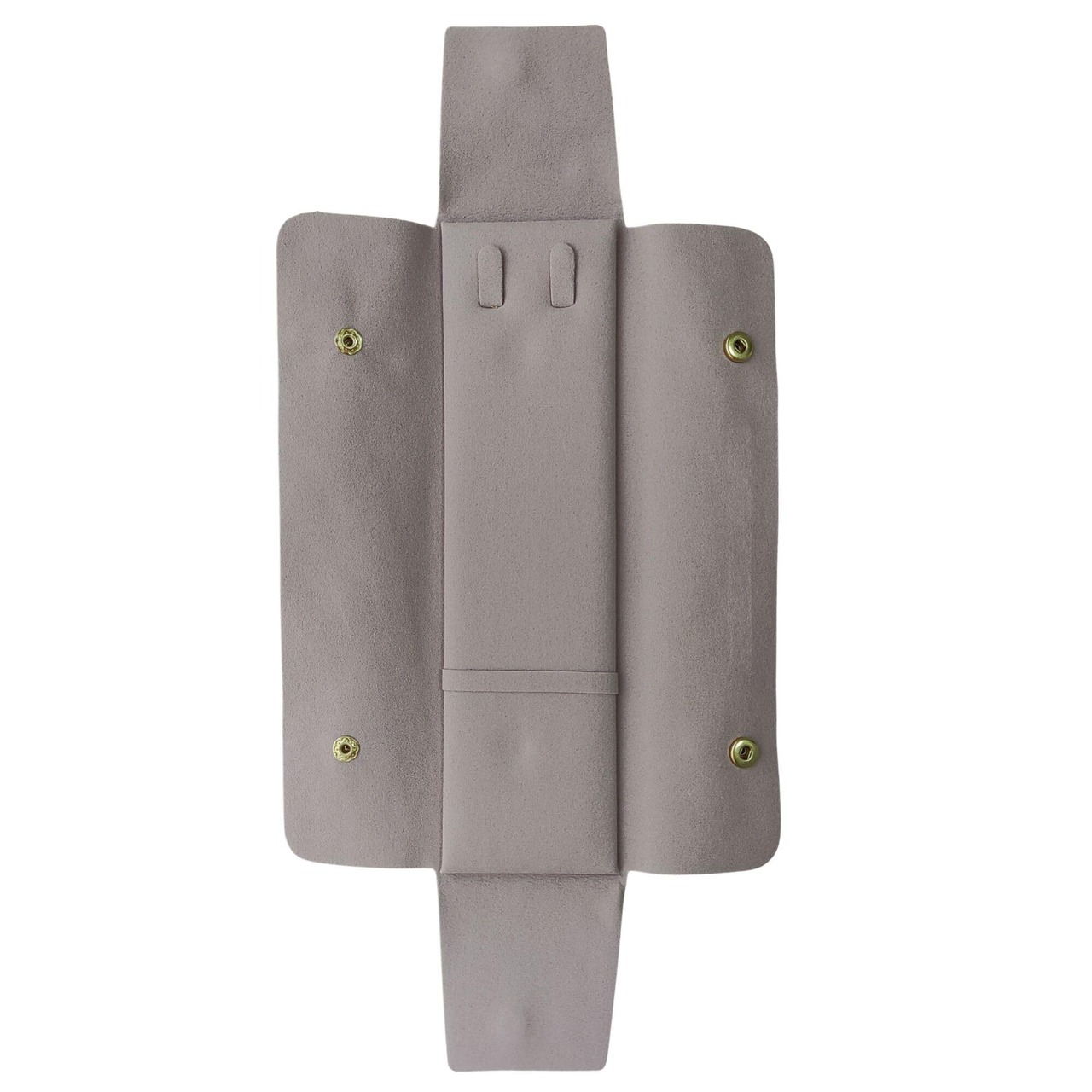ネックレスを1本ずつ収納できる携帯用ポーチです。 ポーチ内部に固定用パーツを備え、持ち運び時の絡まりや傷を防止します。 表面は高級感のあるマイクロファイバー風素材を使用し、スリムな長方形でバッグにもすっきり収まります。 旅行や出張、日常のアクセサリー収納に最適です。