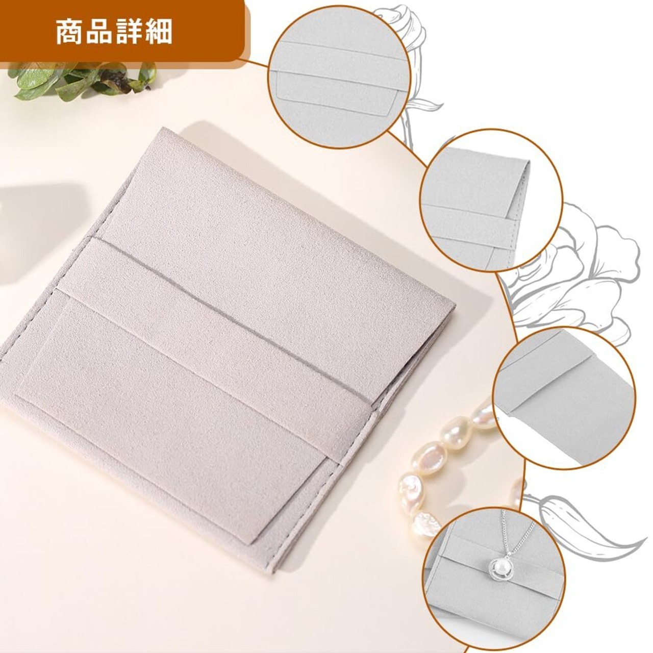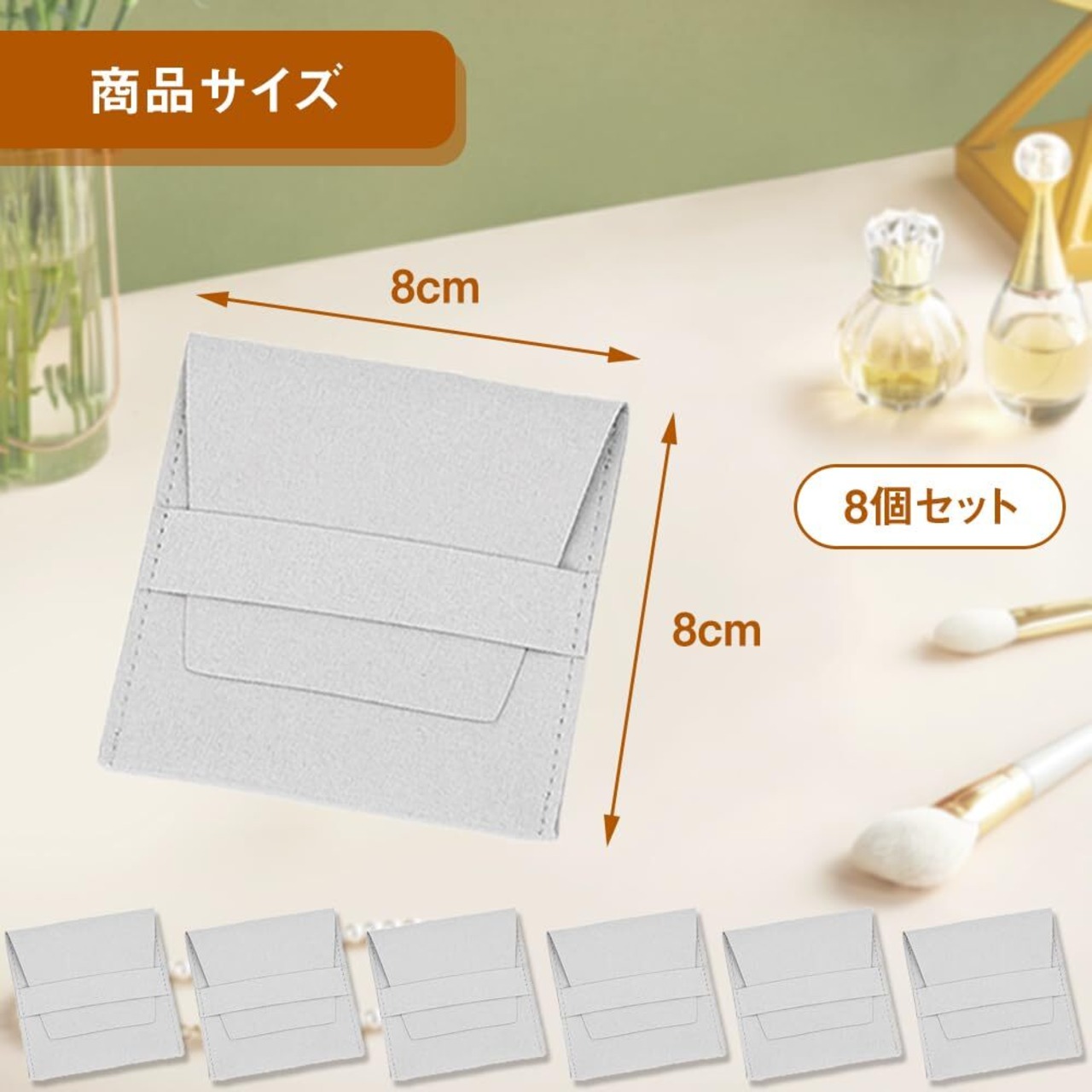 ジュエリーポーチ サイズ: 8x8 cm; カラー: グレー; 8個セット。ご注文前に、必要に応じてポーチのサイズをご確認ください。