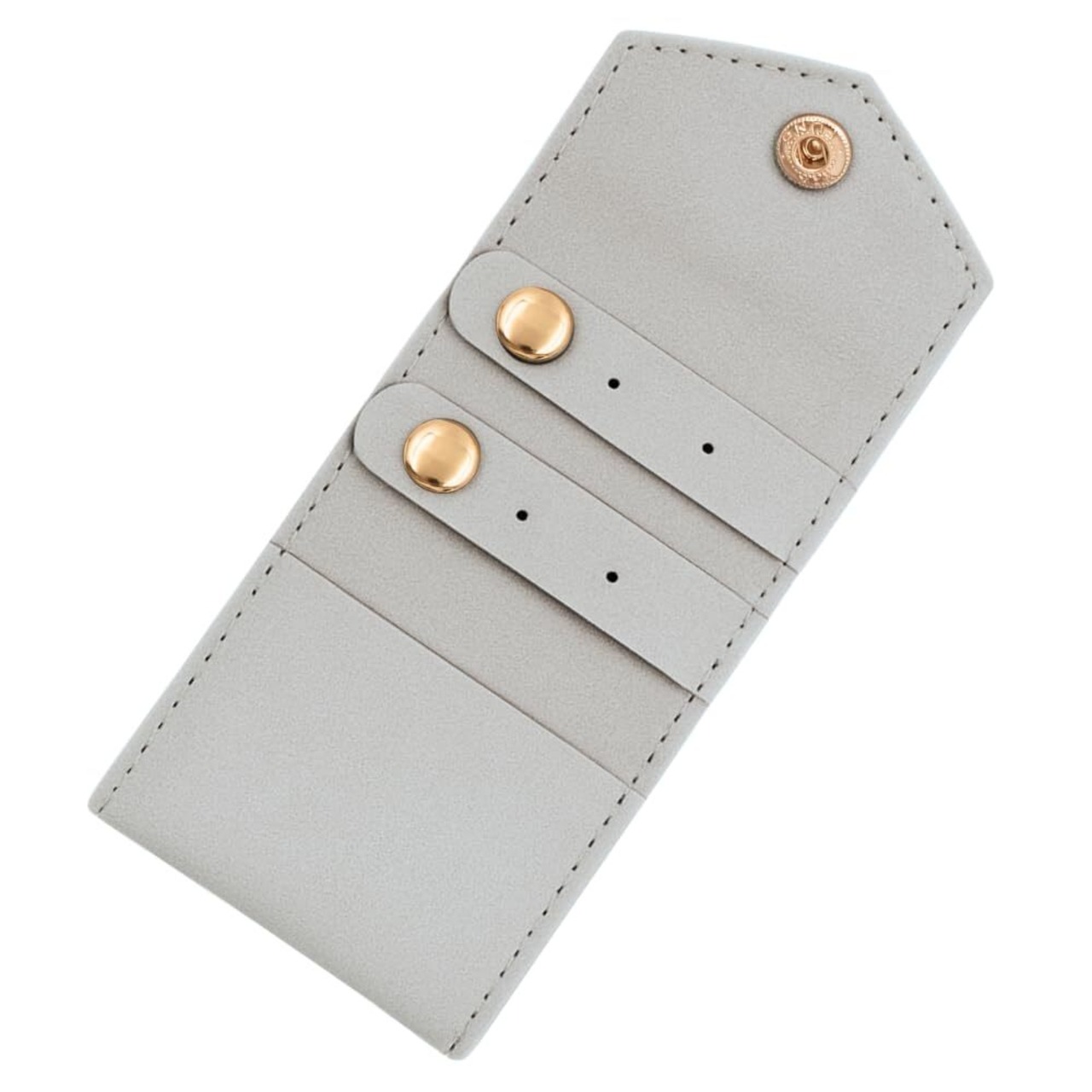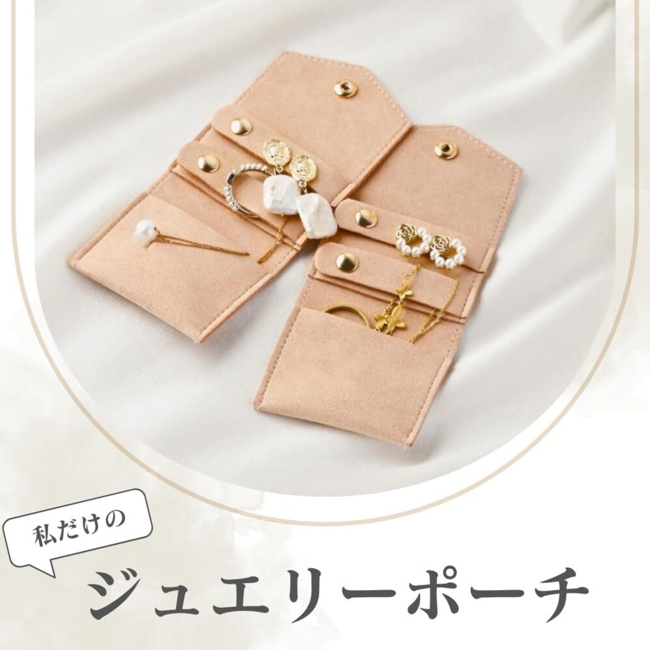 【ピアス・指輪に特化した収納設計】 ボタン開閉できるピアス用収納穴×4と小物ポケット×1付きで、リングやイヤリングをしっかり整理でき、出先でも安心です。