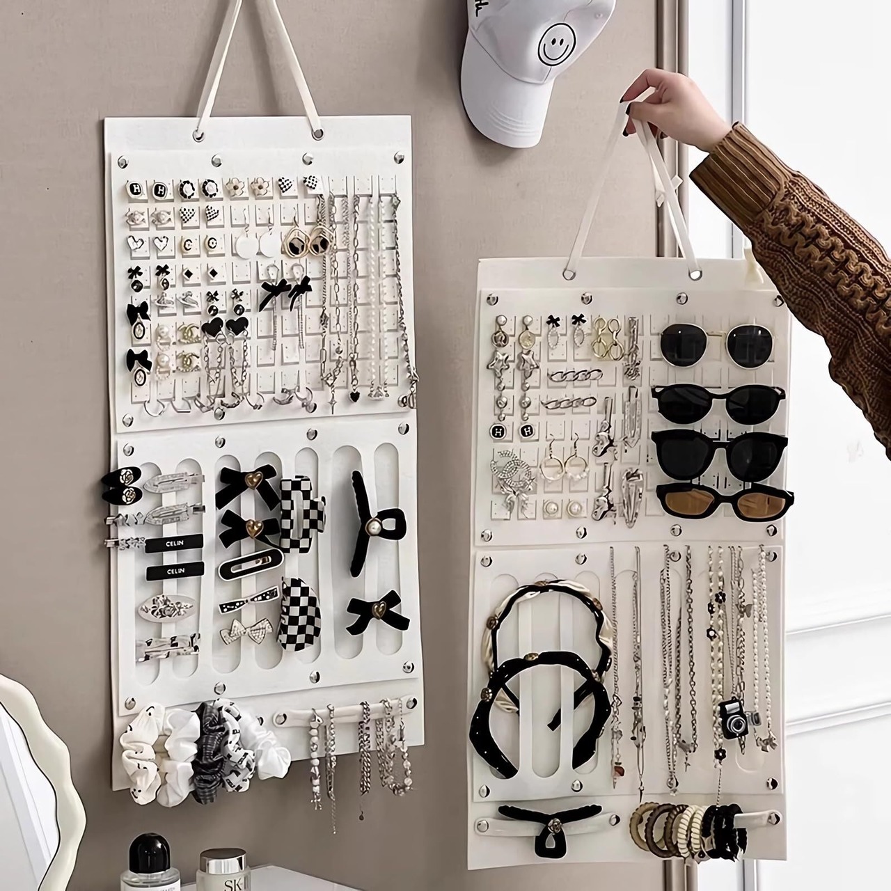 SinfoniaA イヤリングオーガナイザー アクセサリー収納 ジュエリーホルダー ウォールポケット 壁掛け 吊り下げ式 ネックレス イヤリング 収納 小物入れ ヘアアクセサリー 大容量 多機能 省スペース折り畳み (A)