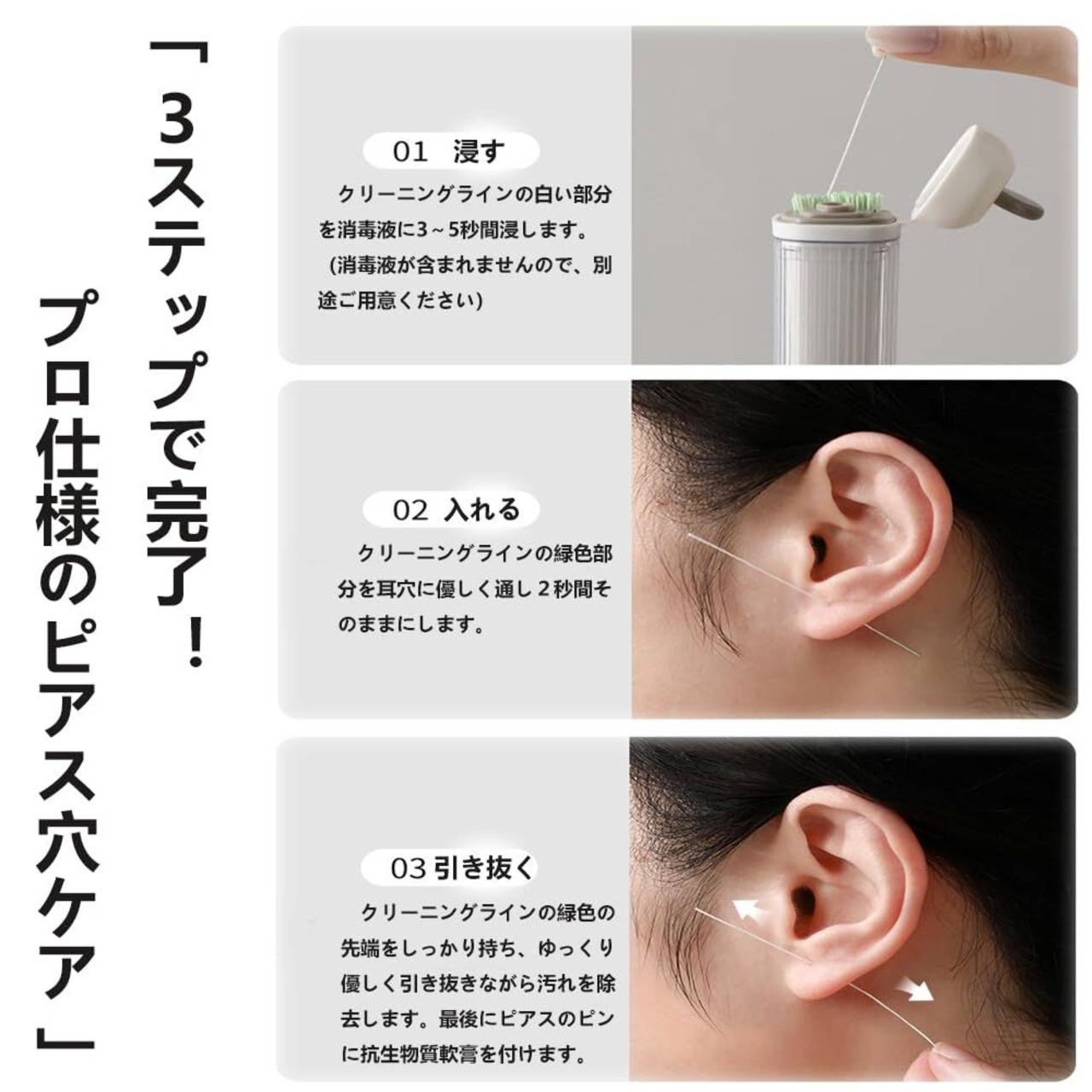 「深層クリーニング&消臭機能 - ピアスホール専用ケア 」 ピアスホールクリーナーの特化設計で、ピアスの穴に蓄積した汚れと嫌なニオイを根元から除去。ピアスホール掃除の新習慣として、日常装用時の清潔感を長時間キープ。快適なピアスライフを徹底サポートします。