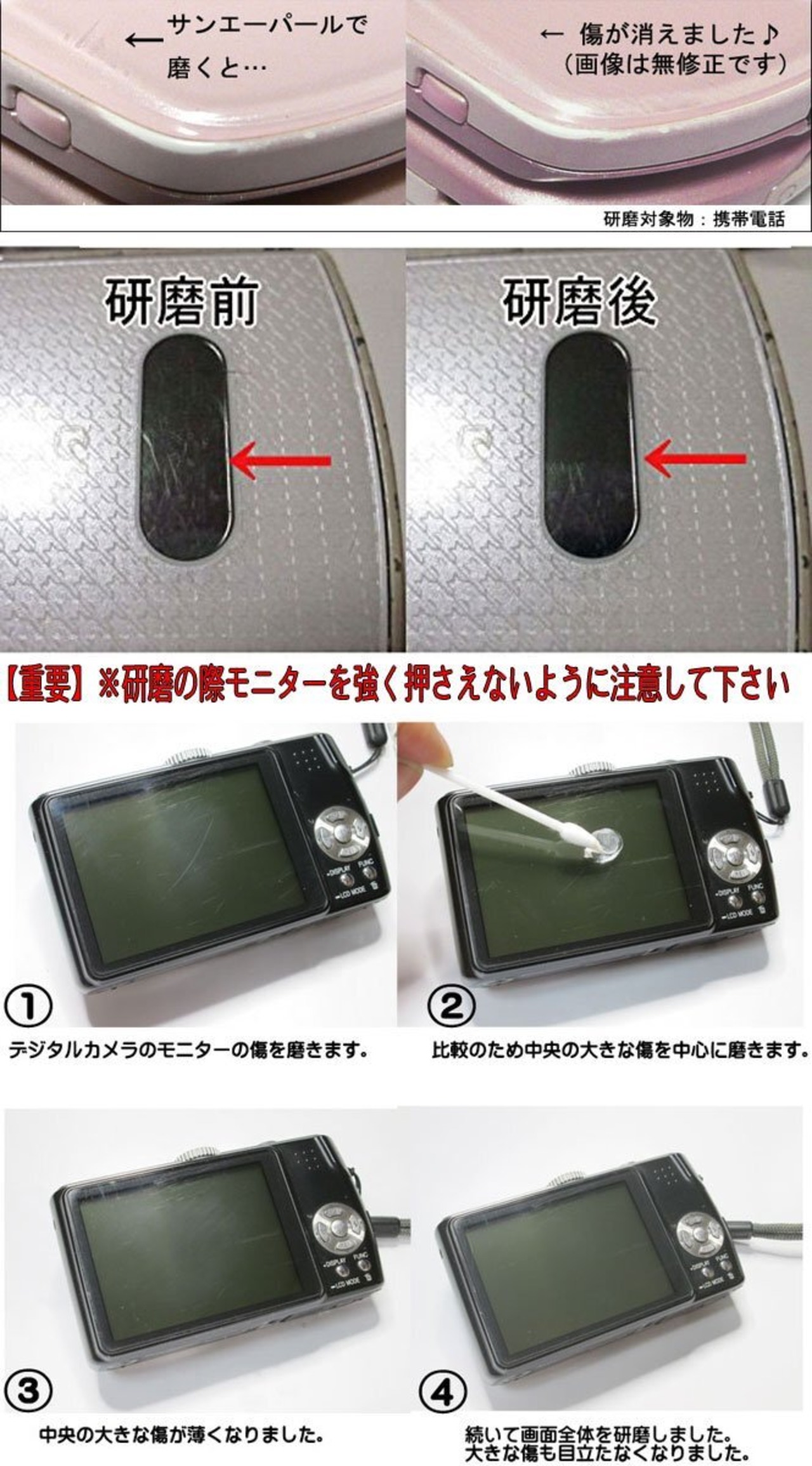 ●頑固な汚れに。 サンエーパール研磨剤とクロスを併用して頂く事で対象物の頑固な汚れ、小さな傷を消し輝きを取り戻すことが可能です。