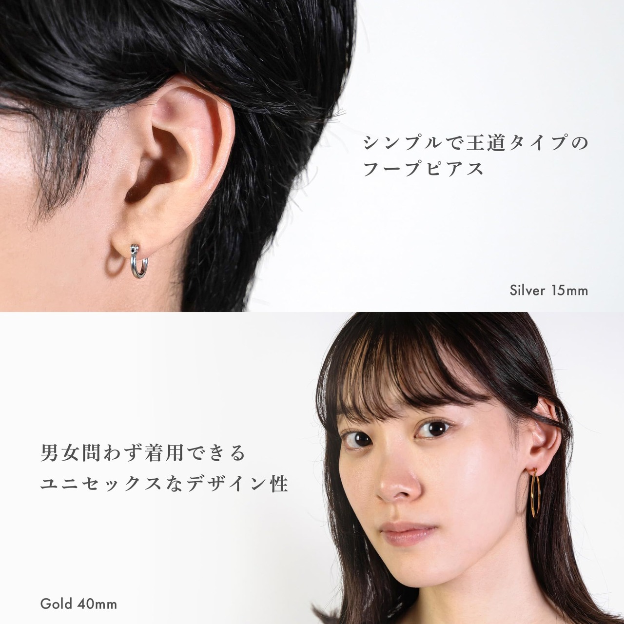 【シンプルな遮断機タイプのフープピアス】 シンプルで王道なフープピアス。シンプルだからこそメンズ、レディース兼用で着用可能なユニセックスなデザイン性です。