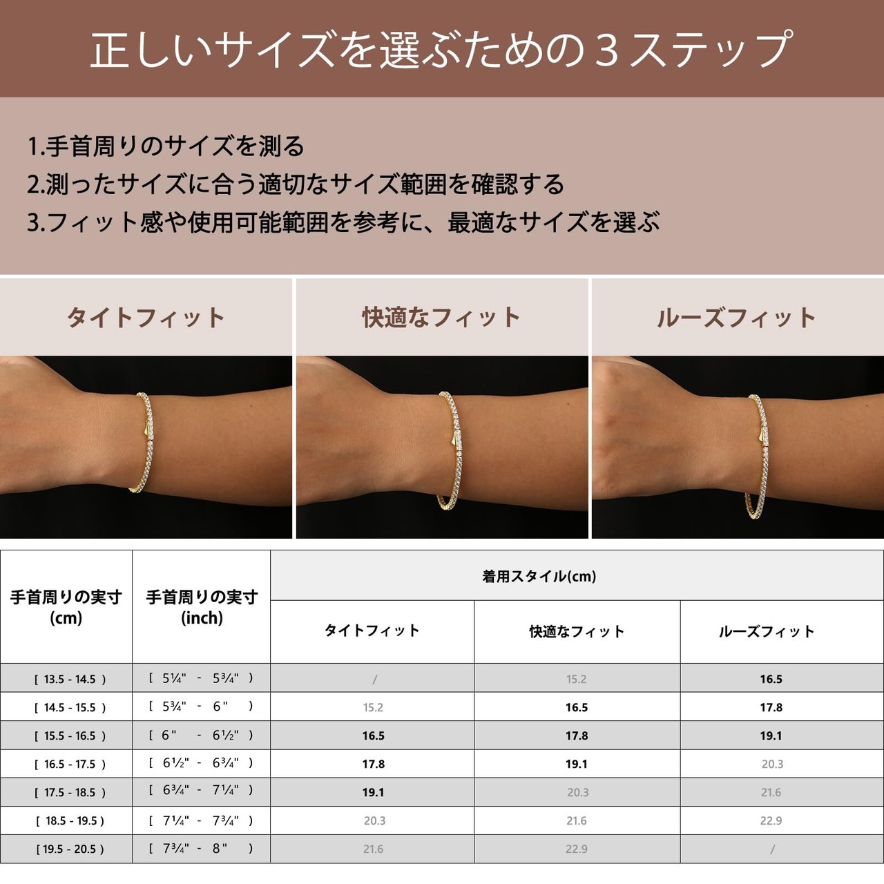 【手元を華やかに彩る】幅4mmの大粒ジルコニアを贅沢に配置した、シンプルでありながら存在感のあるテニスブレスレット。普段のスタイルにプラスするだけで寂しくなりがちな手元を上品に変えてくれます。男女問わず使えるデザインなので、ペアアクセサリーとしてもおすすめです。