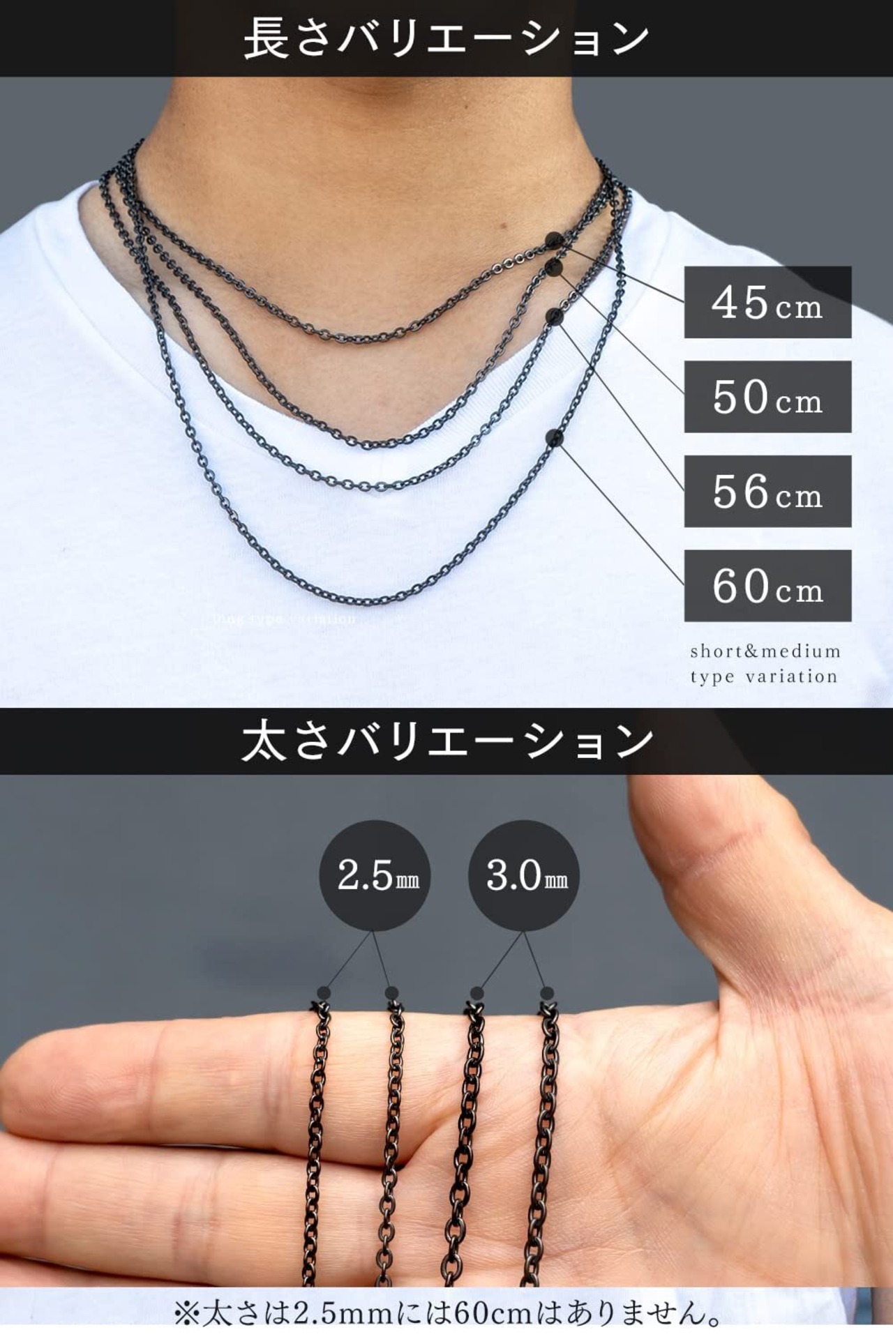 [Napist] ネックレス チェーン メンズ 316L サージカルステンレス 金属アレルギー対応 チタンコーティング NPN302 ブラック 光沢 つや消し