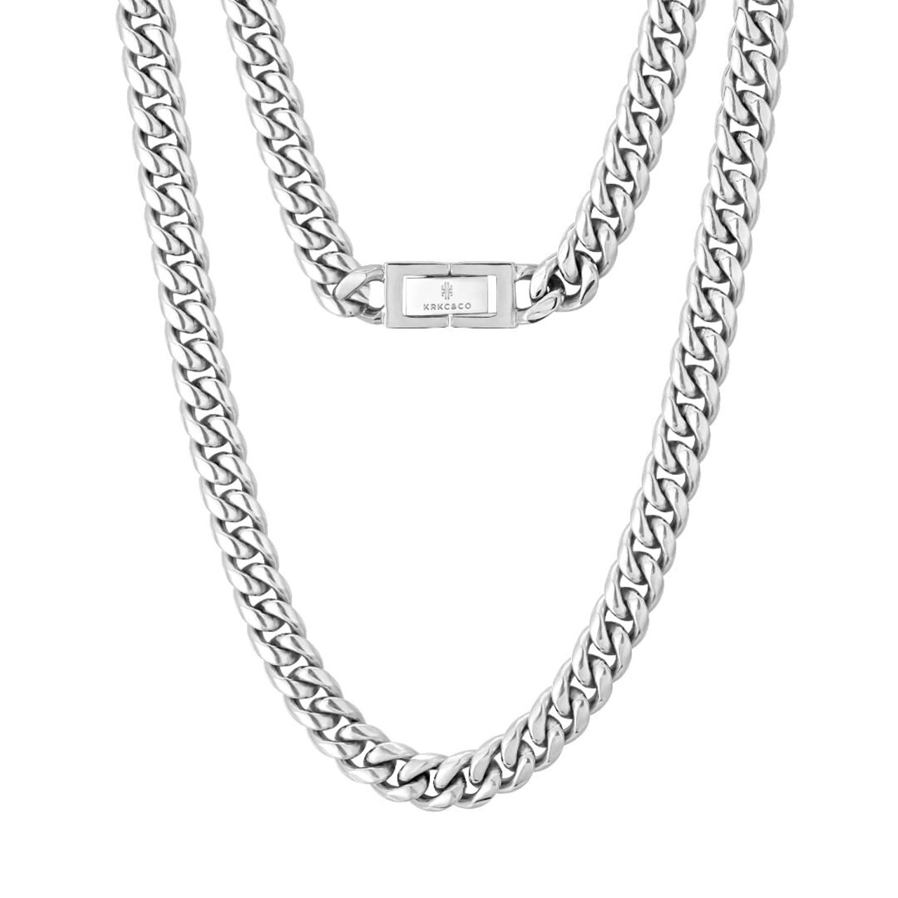KRKC&CO 喜平ネックレス メンズ マイアミキューバンチェーン 幅8/10mm ステンレス k18メッキ 4面カット ヒップホップ ラッパー B系アクセサリー ギフト プレゼント金属アレルギー対応