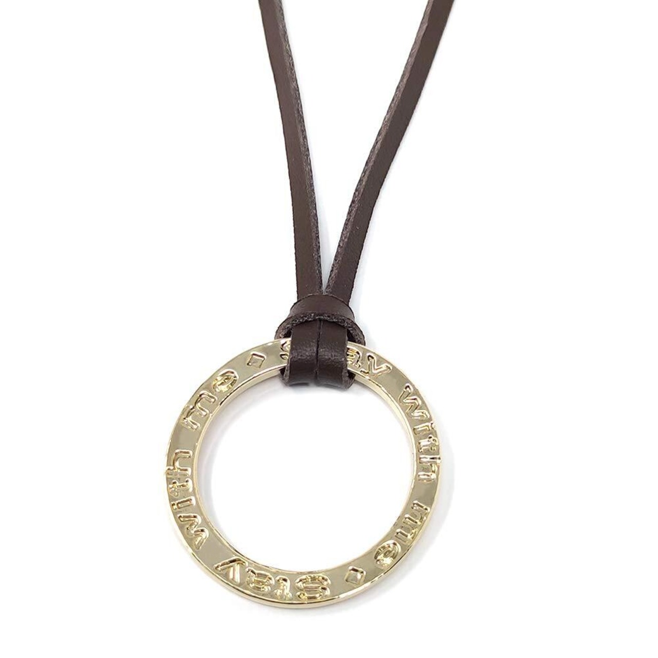 ▼リングに【Stay with me】のメッセージを施したレザーロングネックレス。