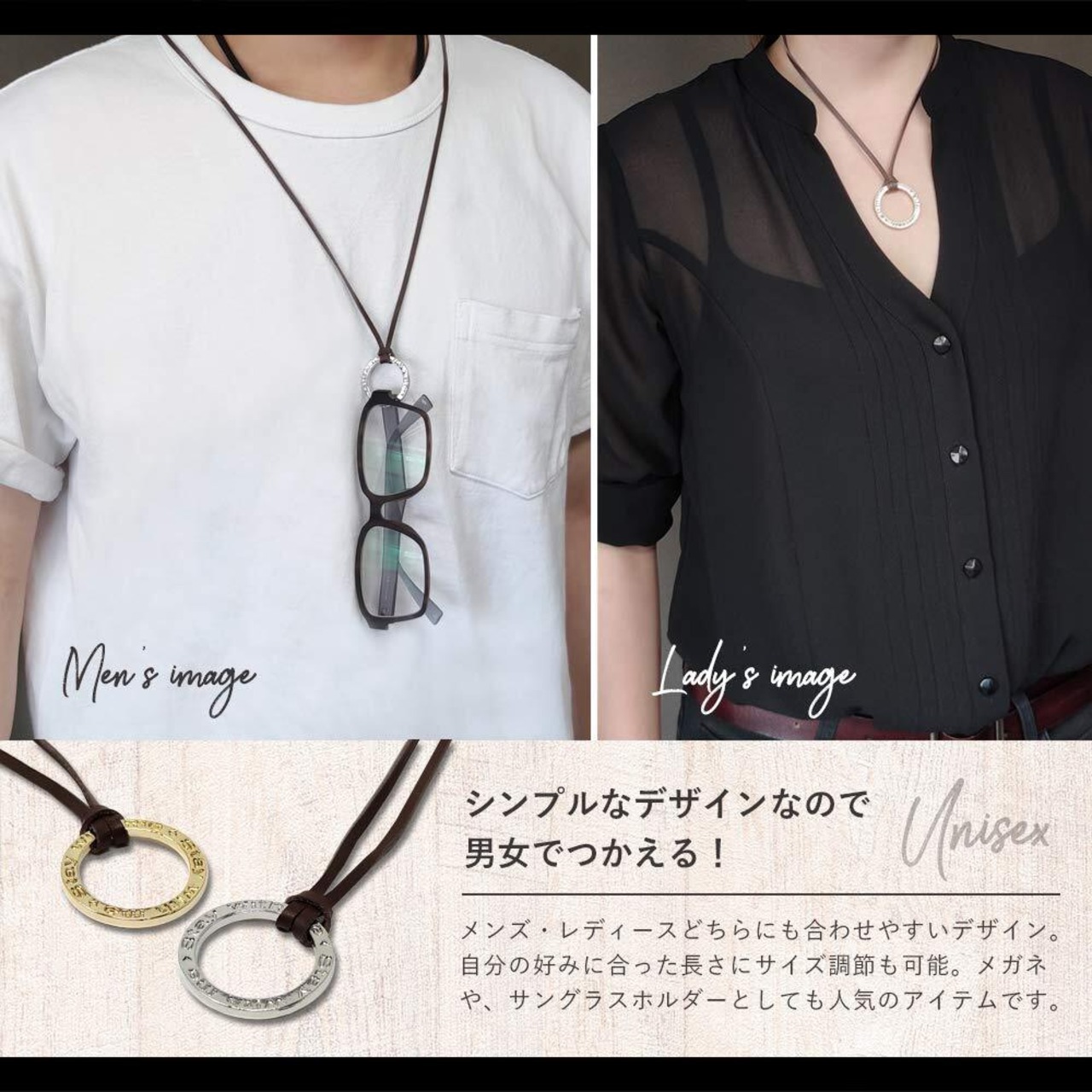 【S.W.P】 メンズ リング レザー ロング ネックレス シンプル メガネホルダー ゴールド arne-002gd