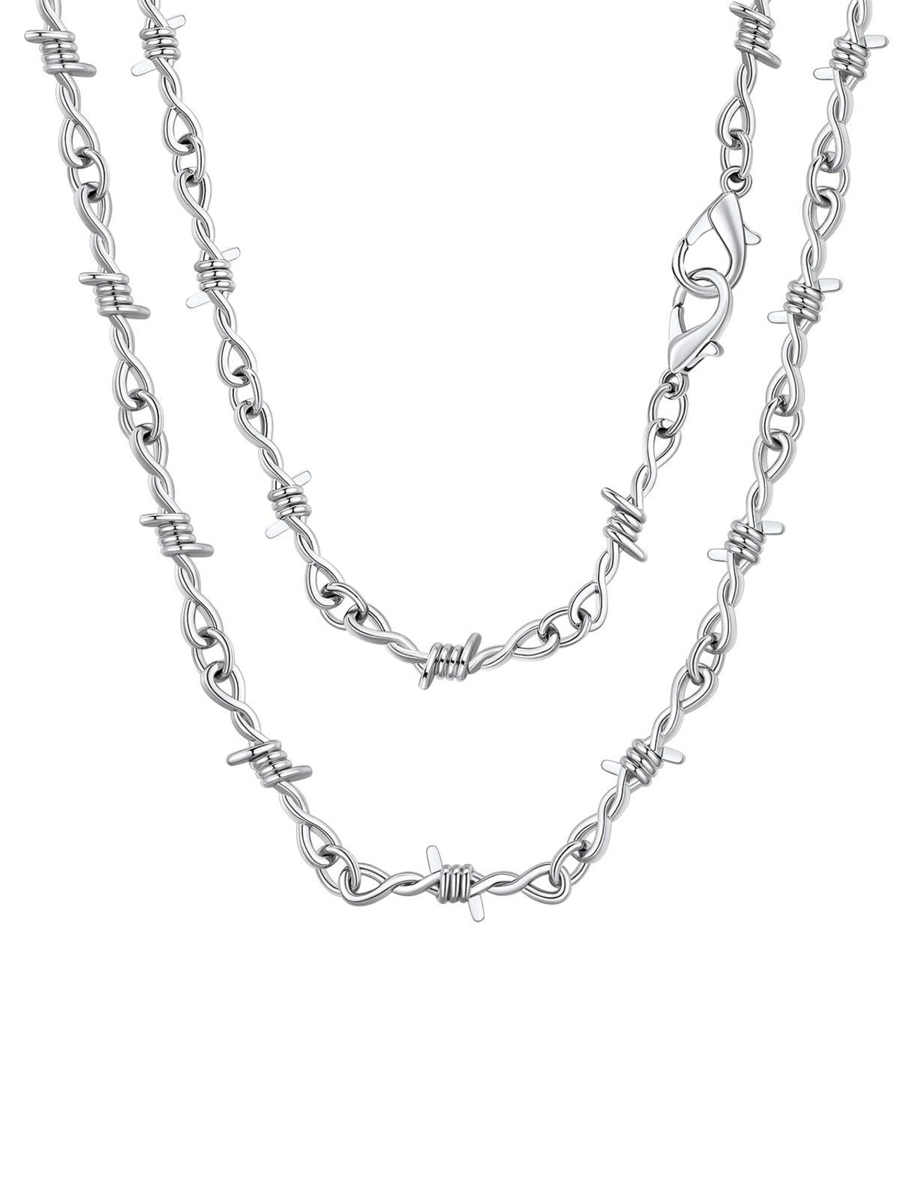 【有刺鉄線チェーンネックレス】有刺鉄線をモチーフでスタイリッシュな印象を与えるネックレス。個性的なデザインで人目を惹きつけるインパクトのあり、ストリート系やパンク、ロック系ファッションが好きな方におすすめです。