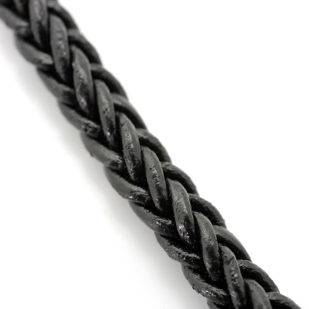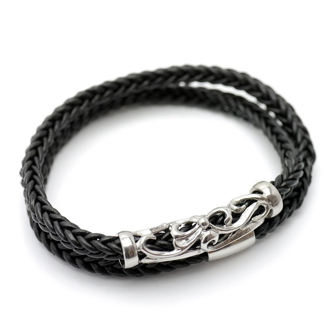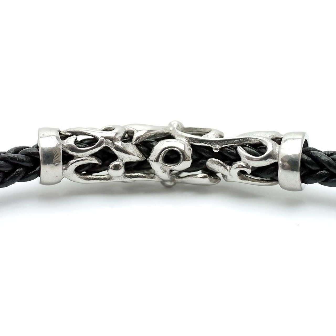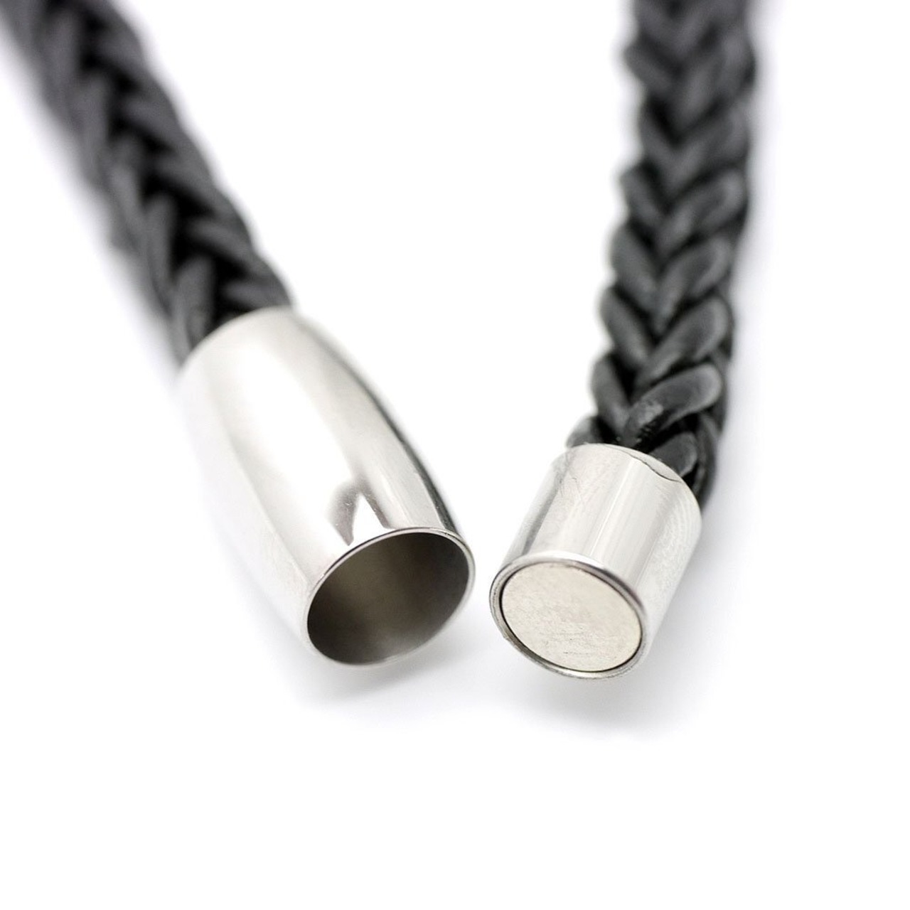 [シルバーワン] ge ワンポイント レザーチョーカー アラベスク ステンレス 本革 メンズ マグネット式[幅7mm 長さ45cm 50cm]編み込み ブラック
