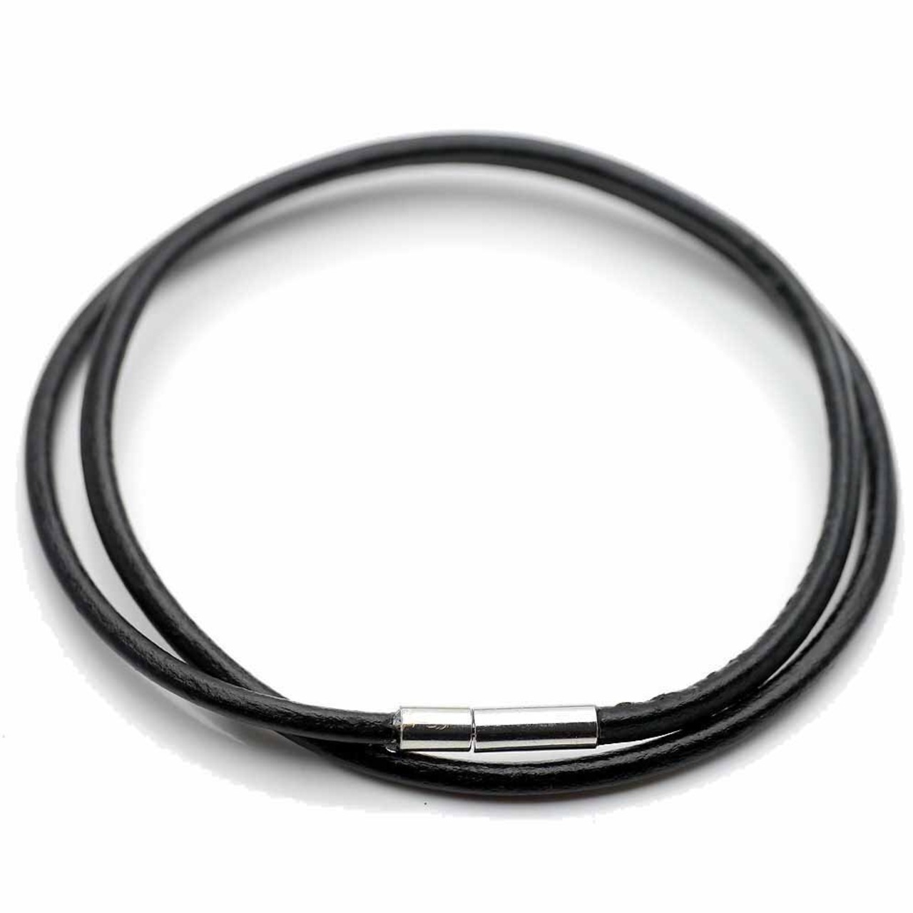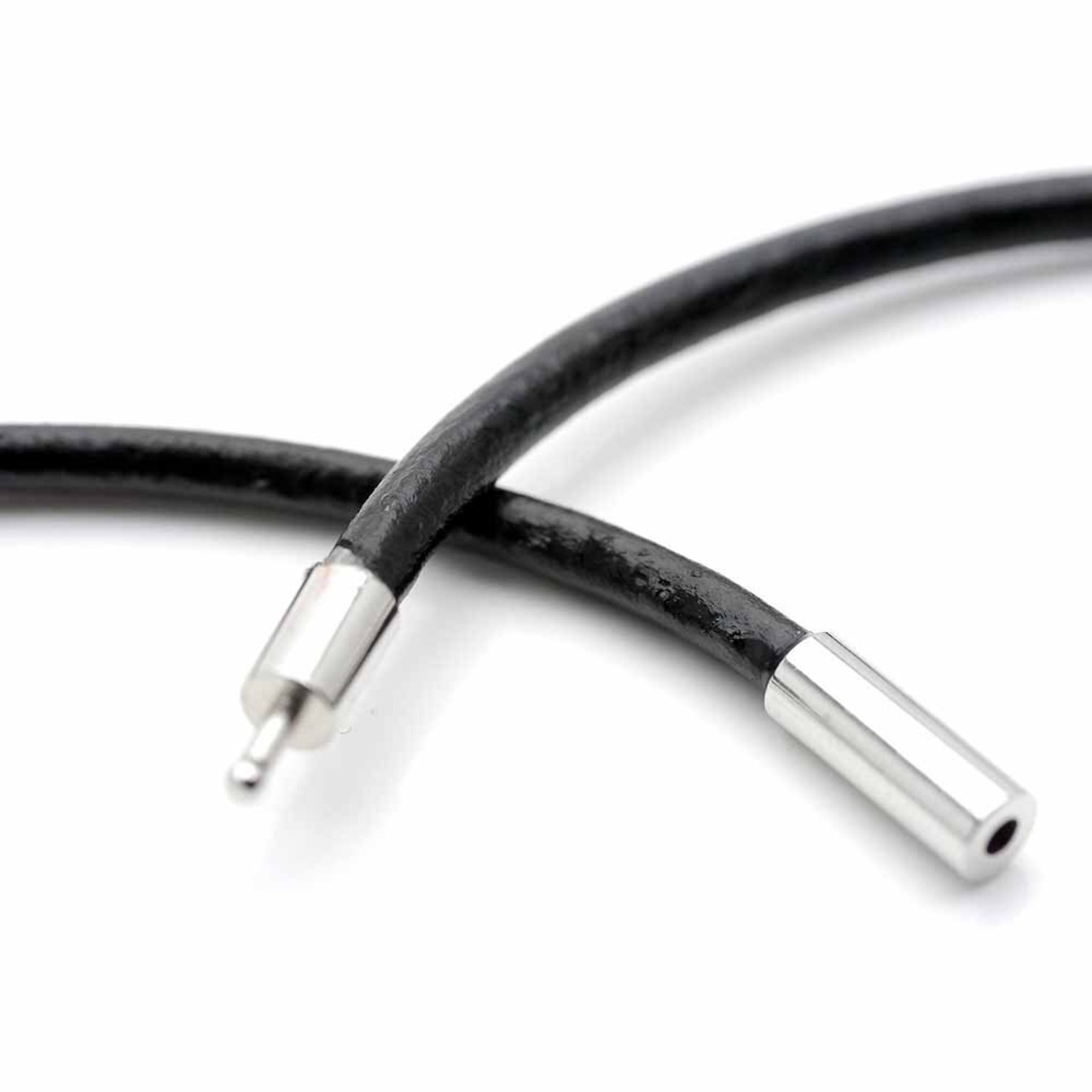 [シルバーワン] 簡単ワンプッシュ 本革レザー 編み込み/ストレート チョーカー 幅3mm 黒 メンズ [40cm~60cm]