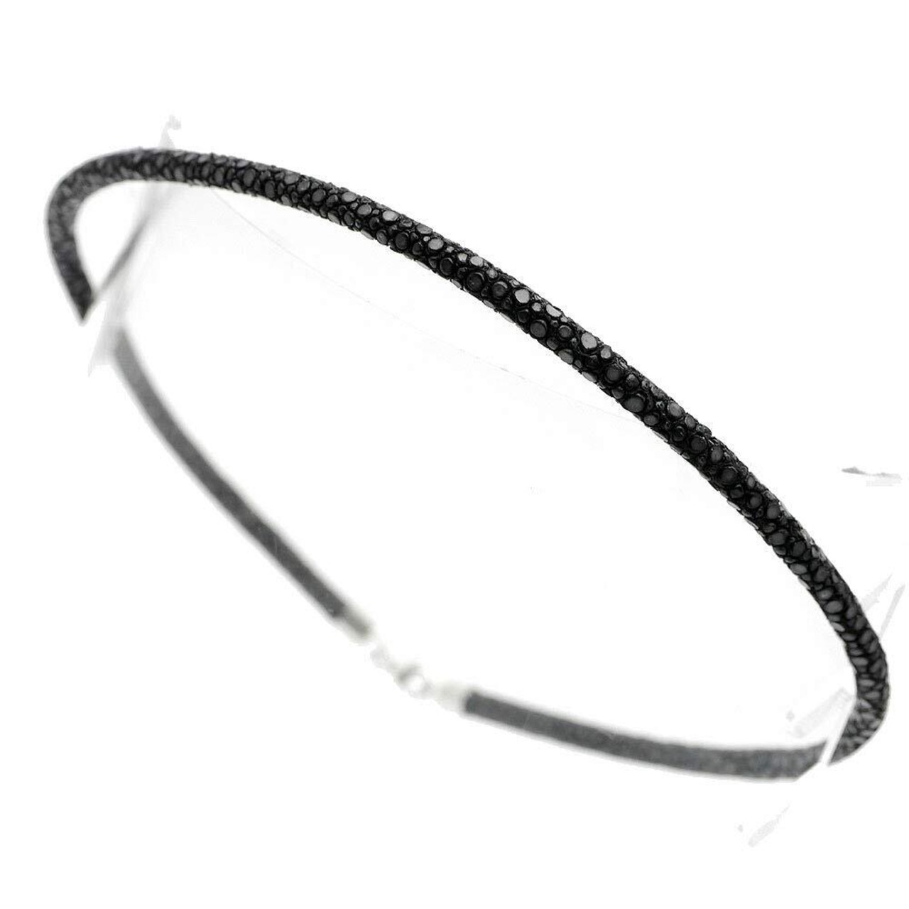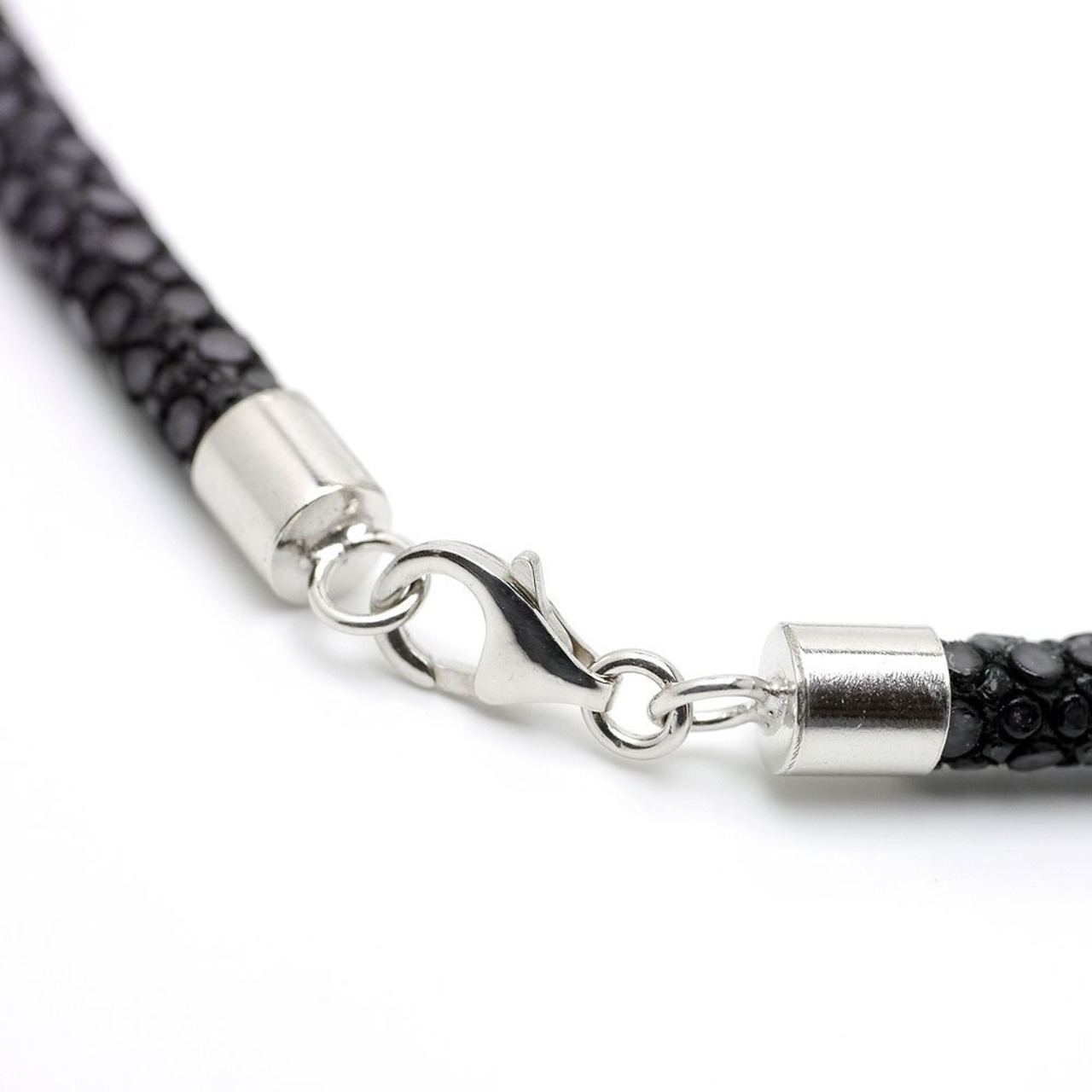 [シルバーワン] スティングレイ革(エイ)キラキラ レザー チョーカー 黒 シルバー925フック メンズ[幅3mm5mm]ブラック ネックレス