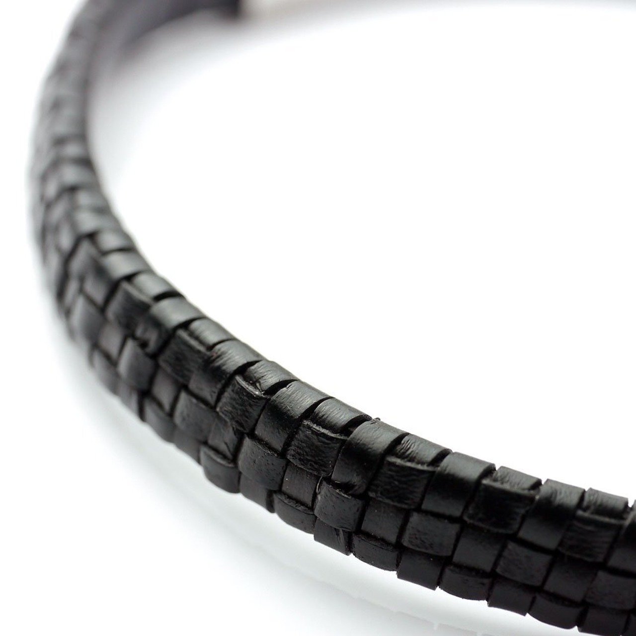 商品説明:本革を編みこんだラグジュアリーなネックレスです! 幅広いファッションでお楽しみ頂けるオールラウンドなアイテム!留め金は簡単に装着ができるロック式で、肌に優しいステンレス製です