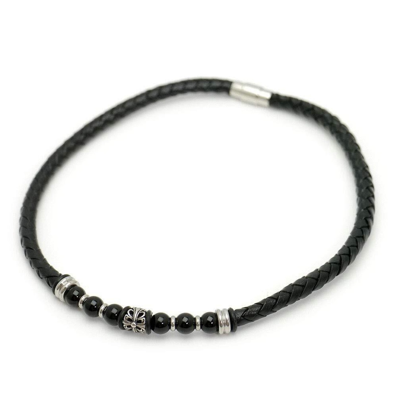 [シルバーワン] オニキス レザー チョーカー メンズ uh マグネット式 黒 長さ45cm