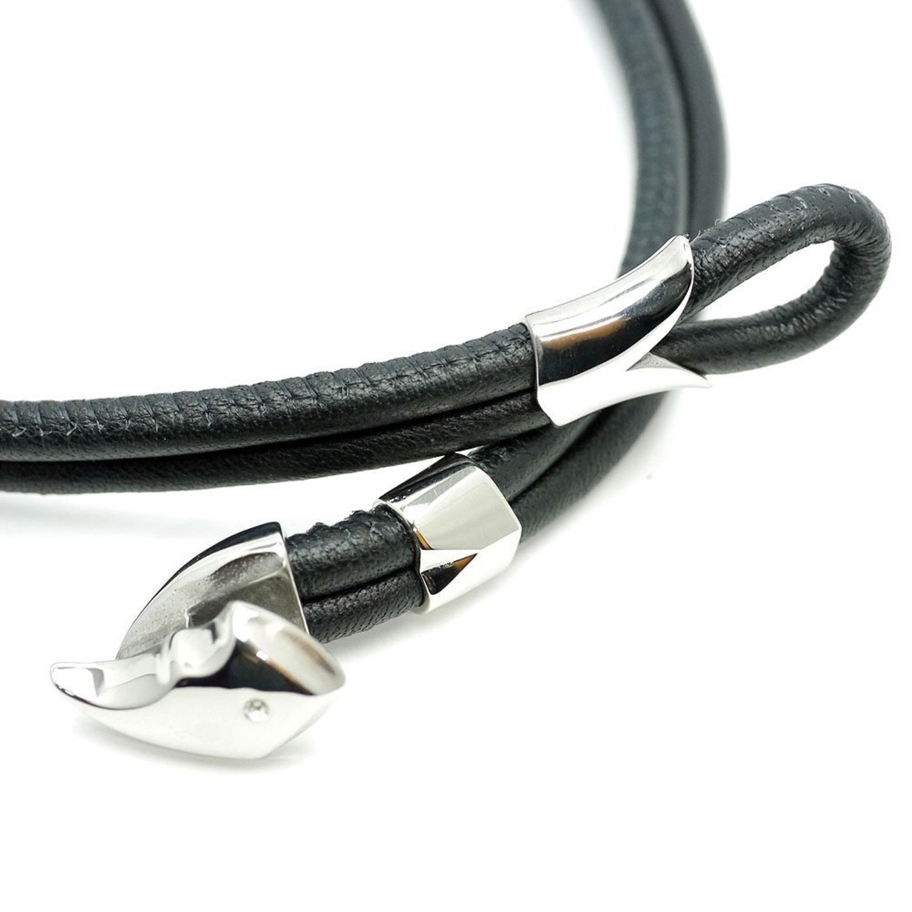 [シルバーワン] ナッパ レザー ダブル 黒 チョーカー メンズ bi [フロントフック ステンレス ブラック][幅10mm 長さ45cm] (首輪)