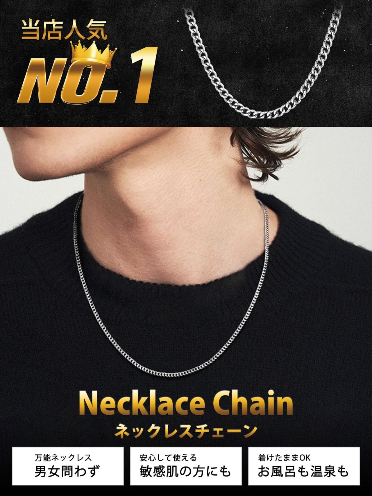 【ステンレスネックレス】地金はステンレスを採用。「錆びにくい」「アレルギー反応を起こしにくい」ので、お肌に優しい素材として人気です。