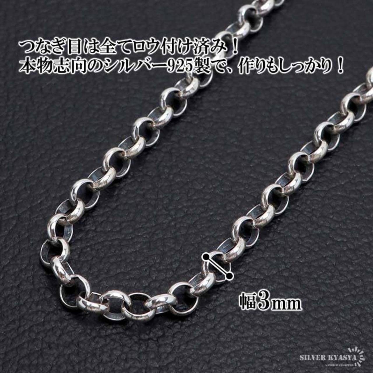「silverKYASYA」シルバー925素材 メンズ ネックレスチェーン シルバーチェーン 925 ロールチェーン