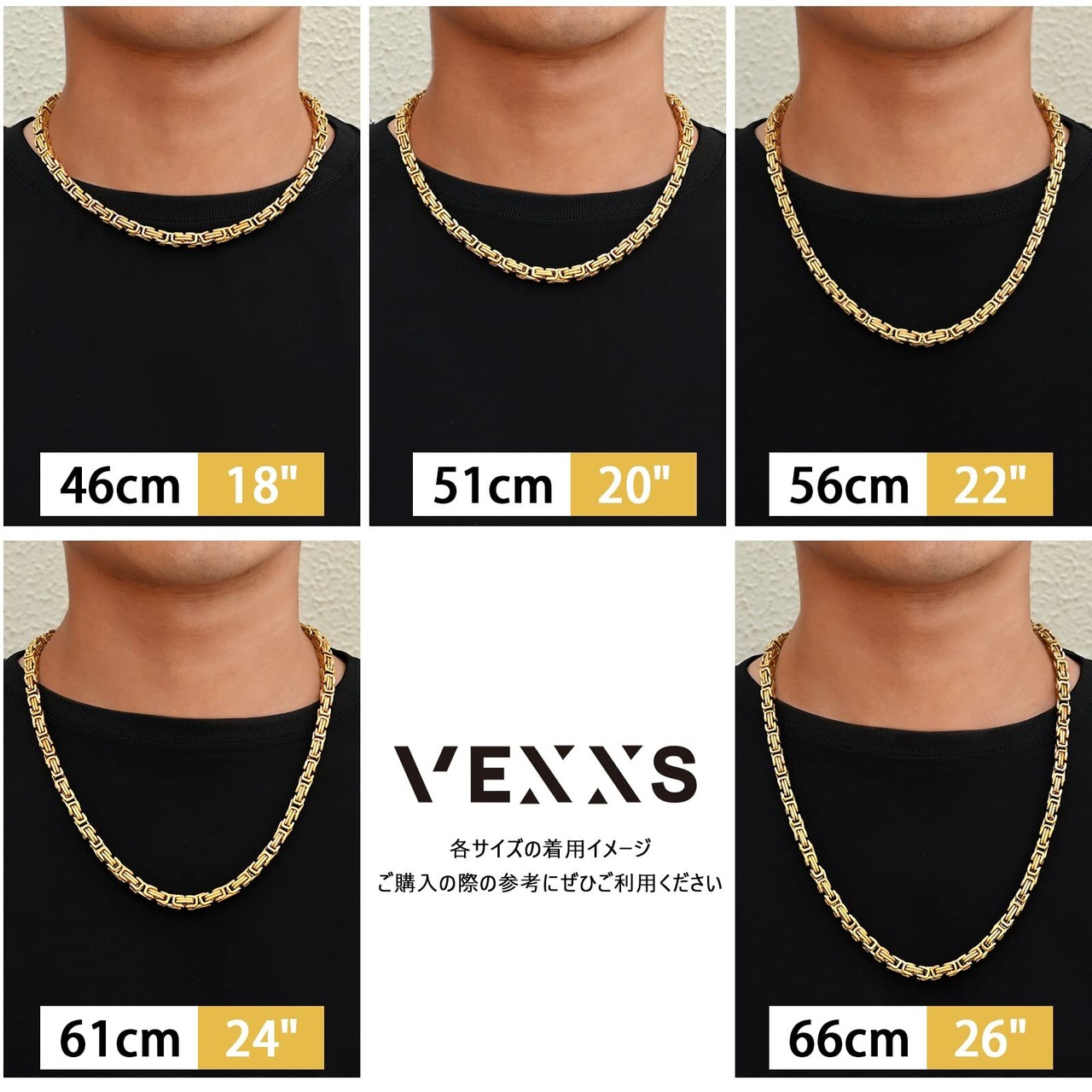 [VEXXS] ビザンチン チェーン ネックレス メンズ 幅4/6mm 18kゴールドメッキ ごつめチェーン 男女兼用 45~65cm