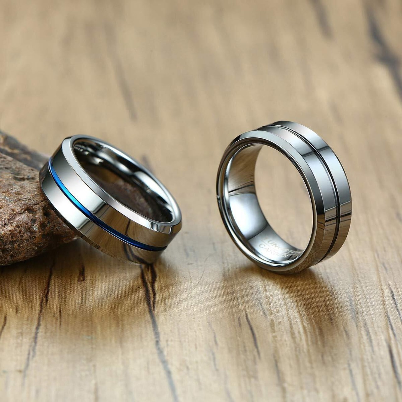 【高品質なタングステン製】本物のタングステンカーバイドによって作られており、比重は金とほぼ同じ、その硬度はダイヤモンドに匹敵。耐久性、低刺激性、優れた耐引掻性などの性能があり、いつまでもその高度な輝きを失いません。
