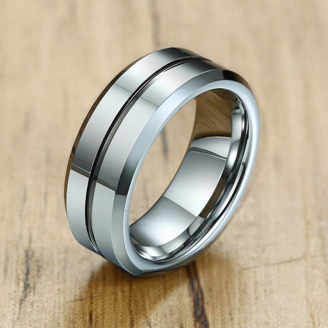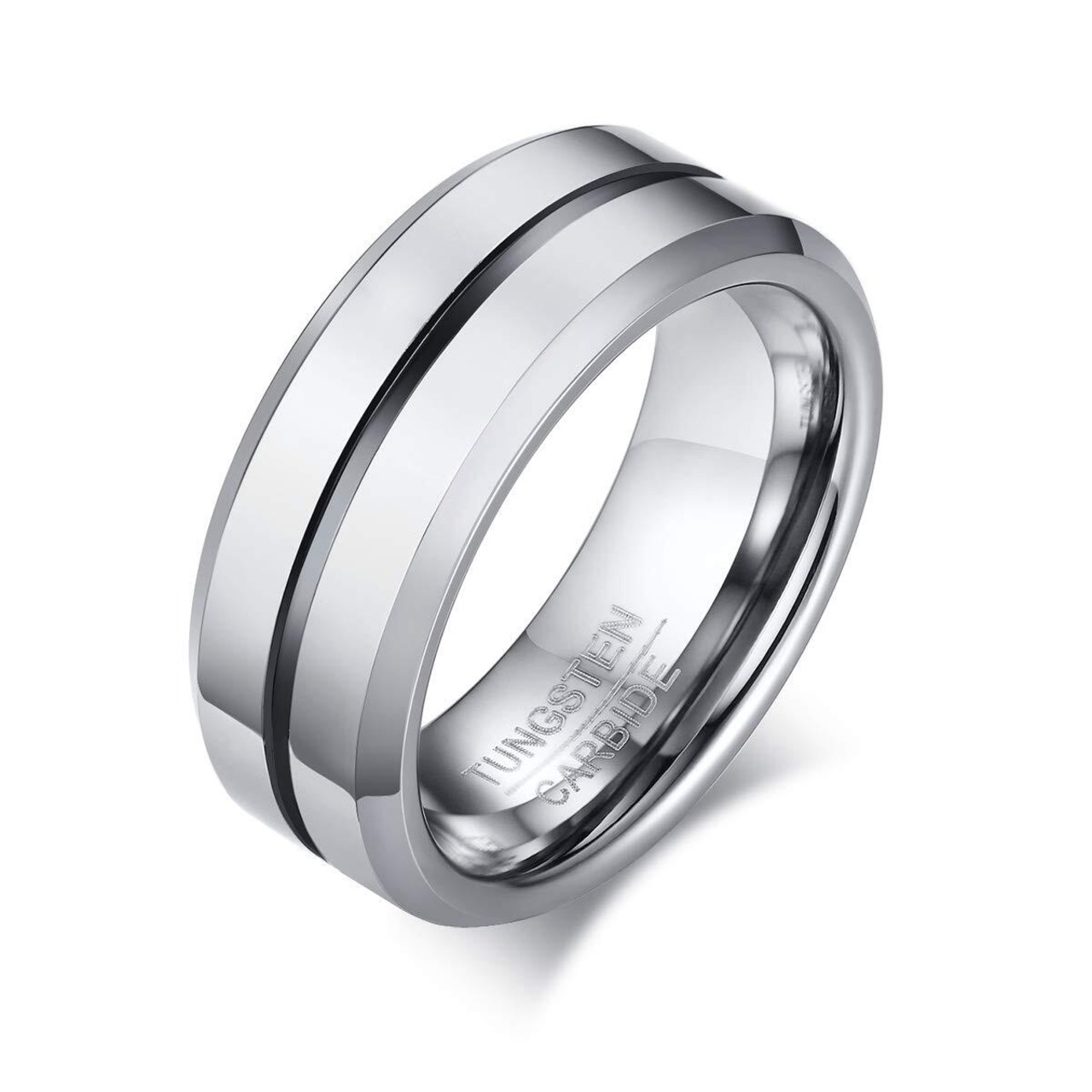 「Rockyu 指輪」 タングステン 指輪 メンズ シンプル リング シルバー 灰線 指輪 18号(指周り:59.8mmに合う) 幅:8mm タングステン比重:金とほぼ同じ、硬度:ダイヤモンドに匹敵、タングステンは耐久性に優れ、傷がつきにくいため、いつまでもその高度な輝きを失いません。【シンプルなデザイン】大人の男性にもピッタリのさりげなく男らしさを与えてくれる魅力的なタングステンメンズ指輪。