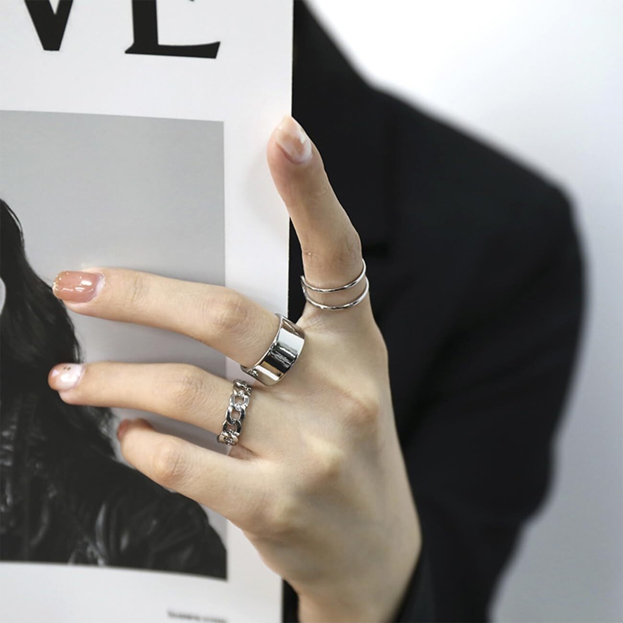 [VitalBloom] メンズ アクセサリー 金属銀メッキリング ズシルバー ユニセックス おしゃれ 人気 アクセサリー シンプル 合金 リング 指輪 セット 連リング 調節可能なサイズ プレゼント