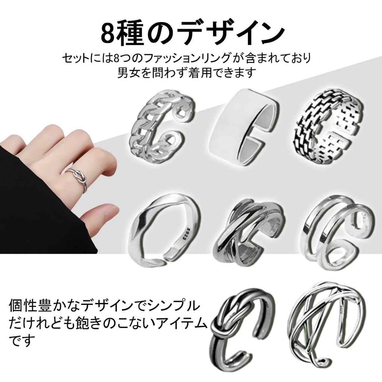 【8種類セット】男女を問わず着用できます。個性豊かなデザインでシンプルだけれども飽きのこないアイテムです。金属の光沢が目を引き、適度な存在感があり、手元がより精巧に見えます。