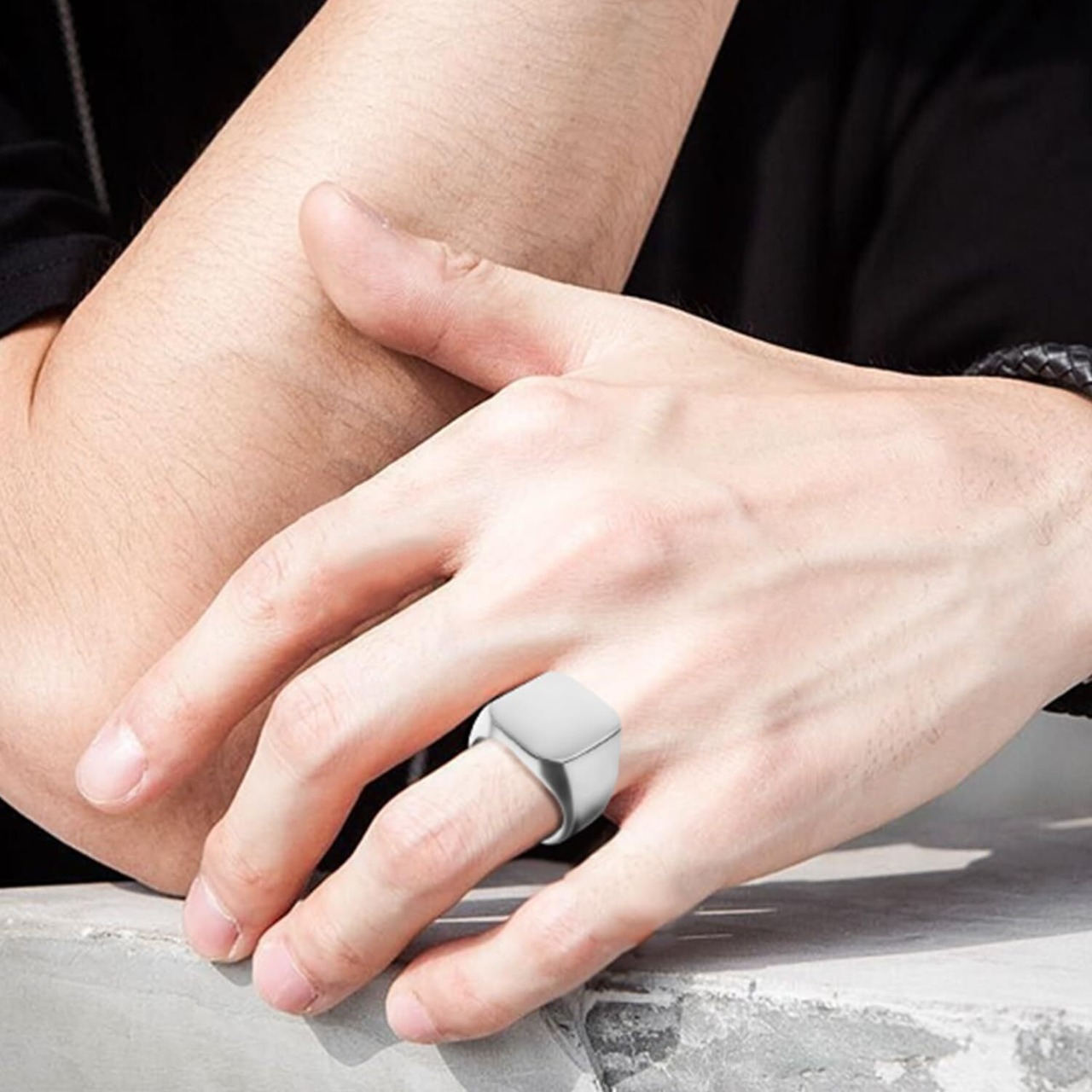 Flogno メンズ指輪 リング 結婚 婚約 ステンレス製 シンプル クラシック 印台 方形 幅広い 太い 大きい 幅15MM 人気 かっこいい 質感 クリスマス バレンタインデー ホワイトデー お記念日 お誕生日 プレゼント ギフト袋付き シルバー「17号」