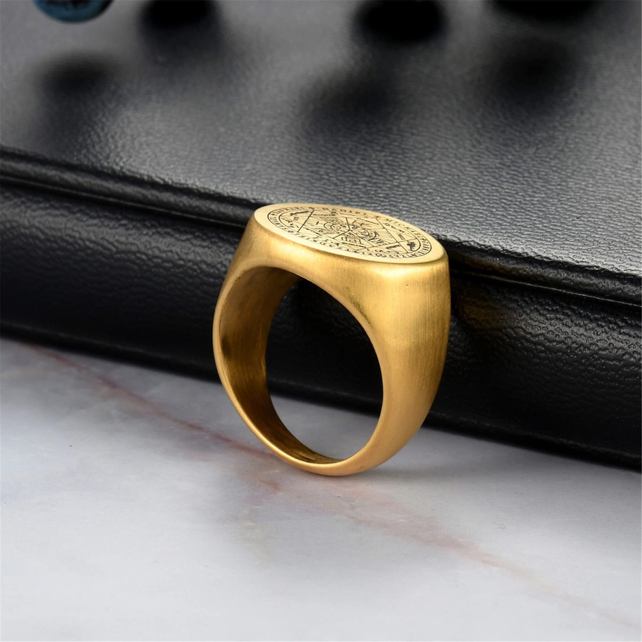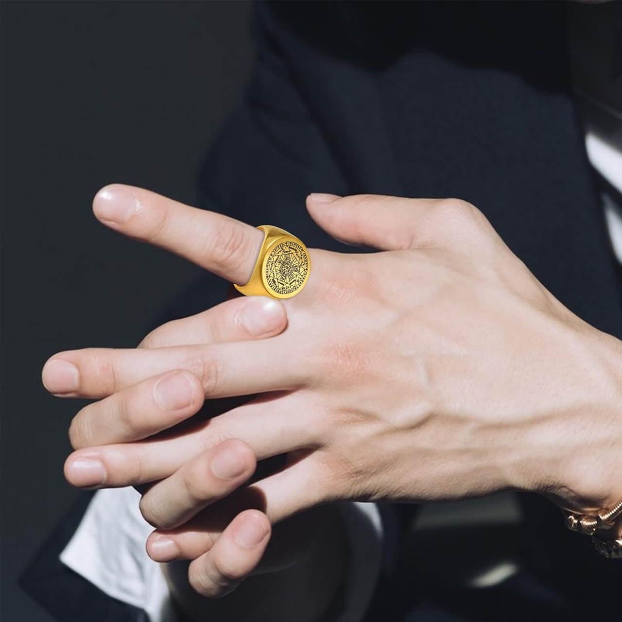 [Flongo] 7つの聖天使 六芒星 魔法陣 星 メンズ指輪 リング アンティーク ビンテージ 欧米風 中世風 ユニーク ゴシック ステンレス製 ハロウィン クリスマス 復活祭 彼氏に プレゼント ギフト袋付き