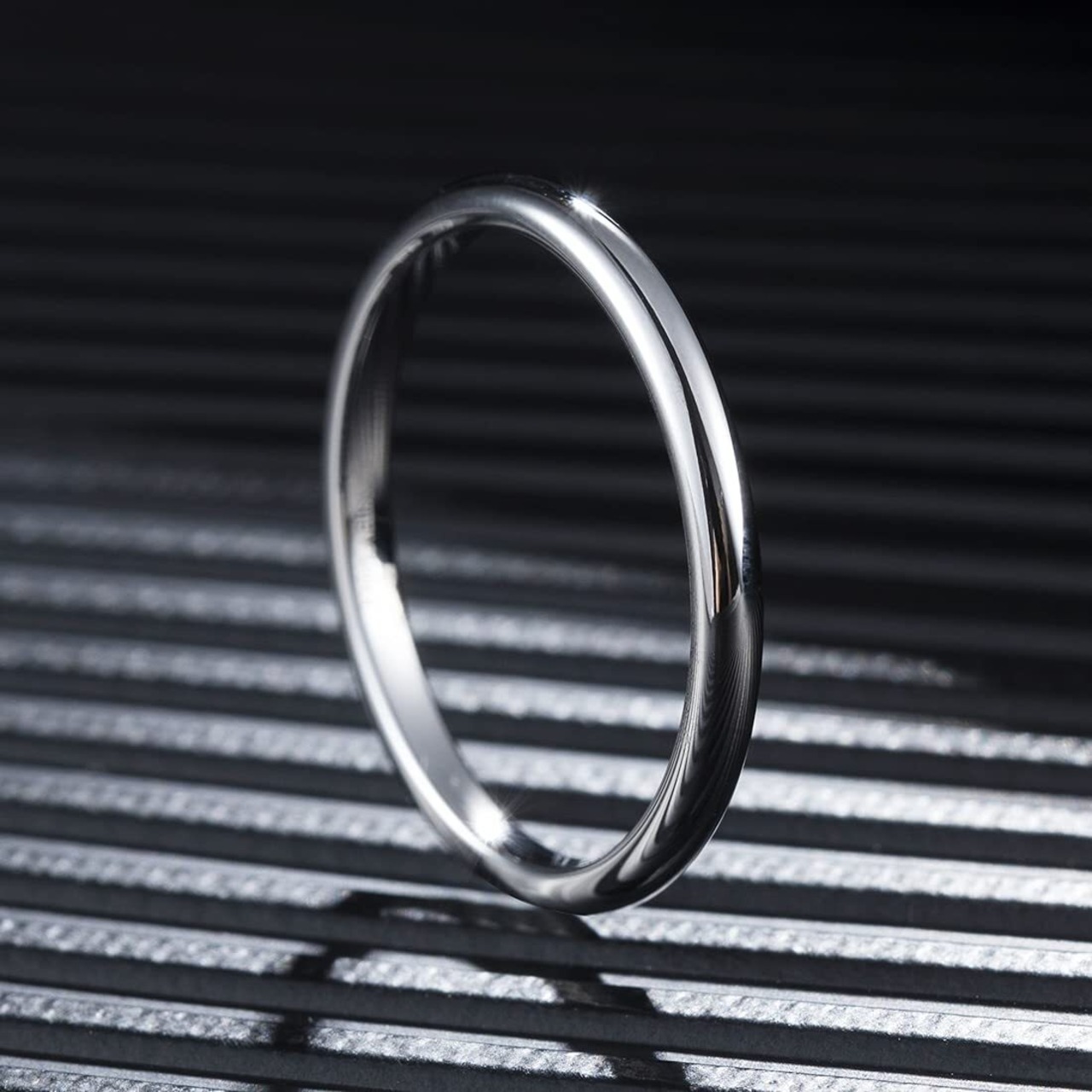 クラシックデザイン:ベーシックな2mm、4mm、6mm幅のシルバータングステン製ウェディングバンドリング。クラシックなドーム型で、ポリッシュ仕上げとコンフォートフィットが特徴です。