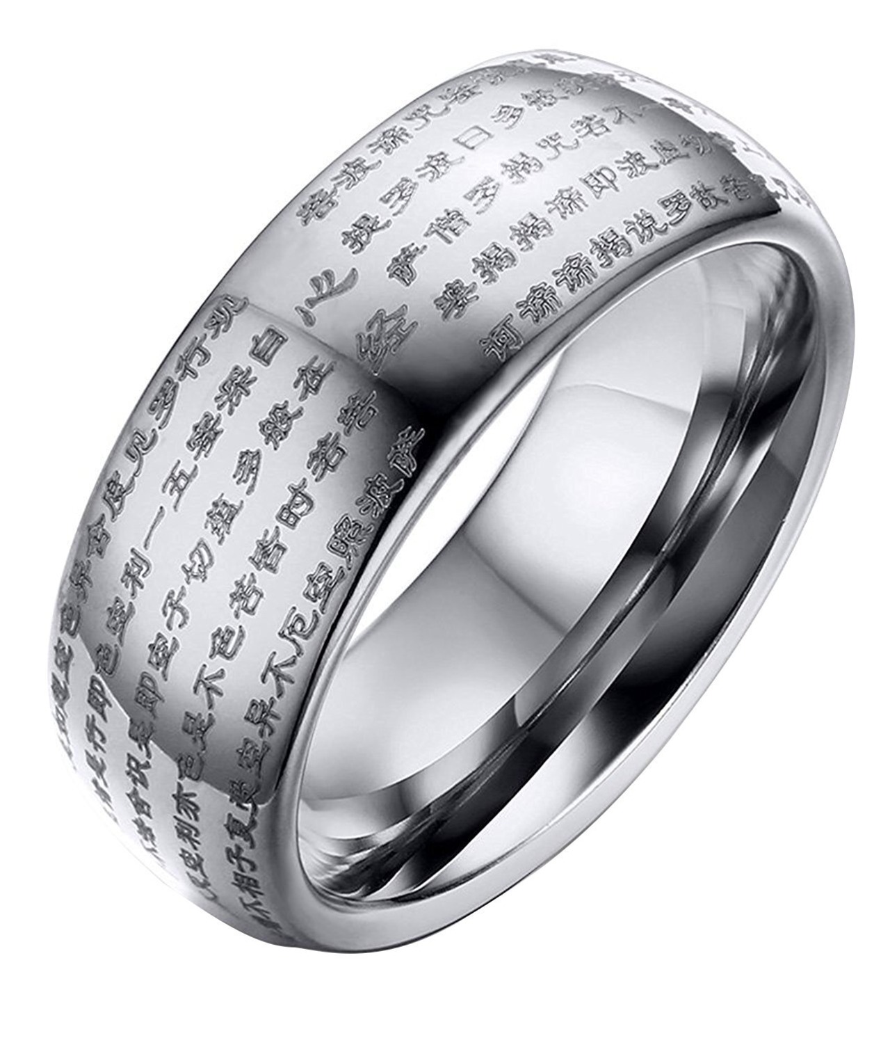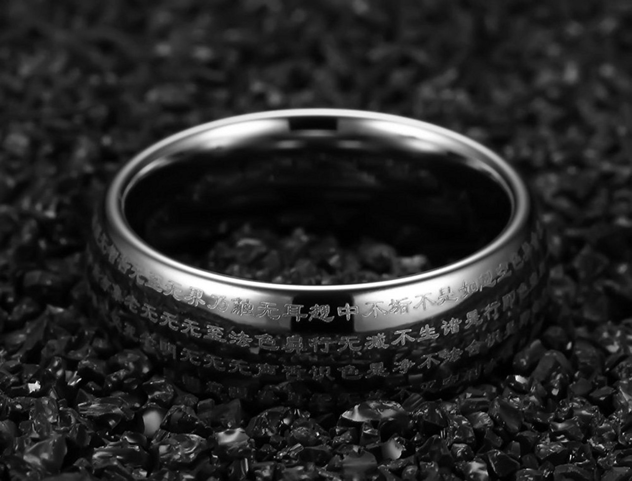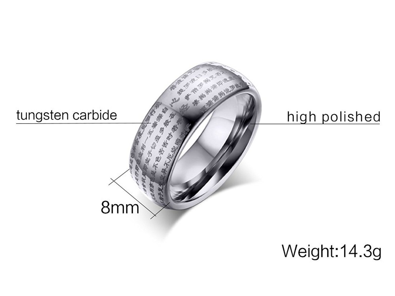[Rockyu] タングステン リング メンズ 指輪 刻印 般若心経 仏経 指輪 お守り 経文 タングステン重い
