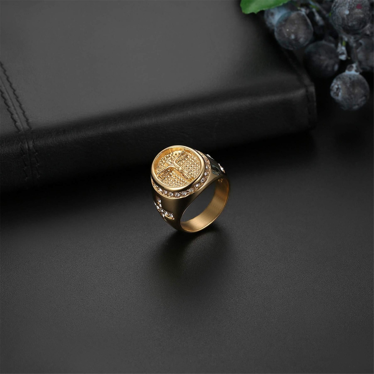 [Flongo] メンズ指輪 メンズリング 結婚 十字架指輪 宗教 イエス イースター 丸形 きらきら 恋人 ヒップホップ 人気 ファション シンプル 男の子 学生 ステンレス アクセサリー ハロウィン バレンタインデー クリスマス プレゼント 誕生日 記念日 ゴールド「日本サイズ15号」