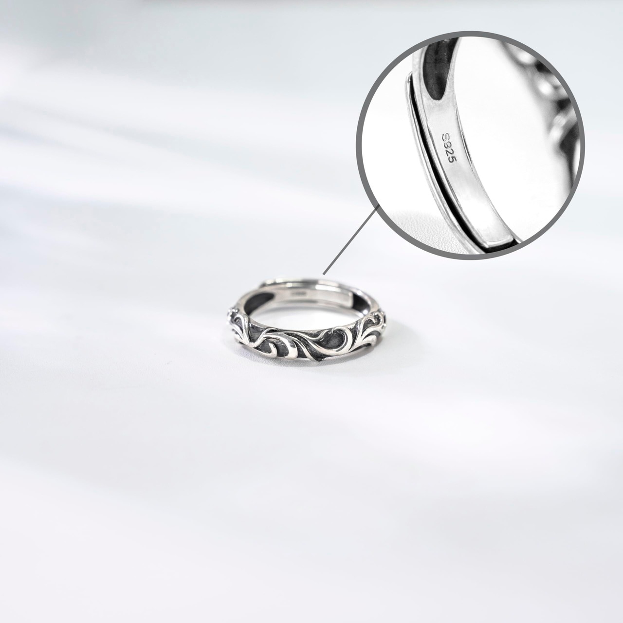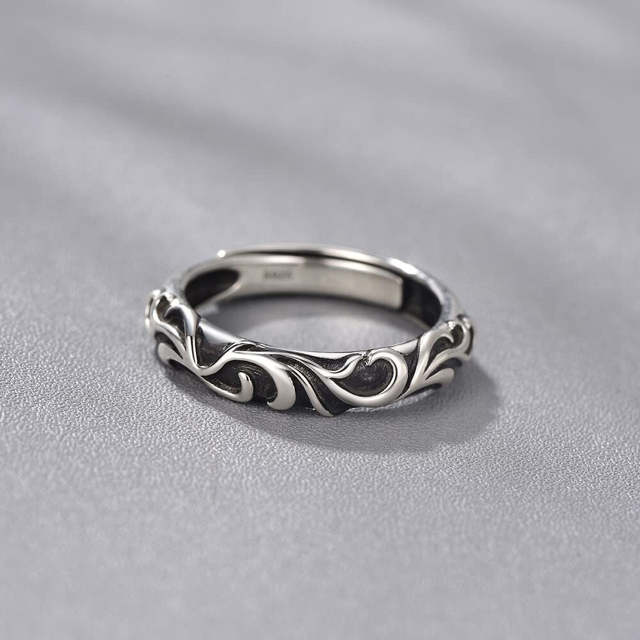 [Free bird] メンズ リング 人気 唐草模様「レトロな美しさ」 シルバーリング レトロ 指輪 調整可能 記念日 誕生日 ホワイトデー プレゼント ホワイトデー お返し