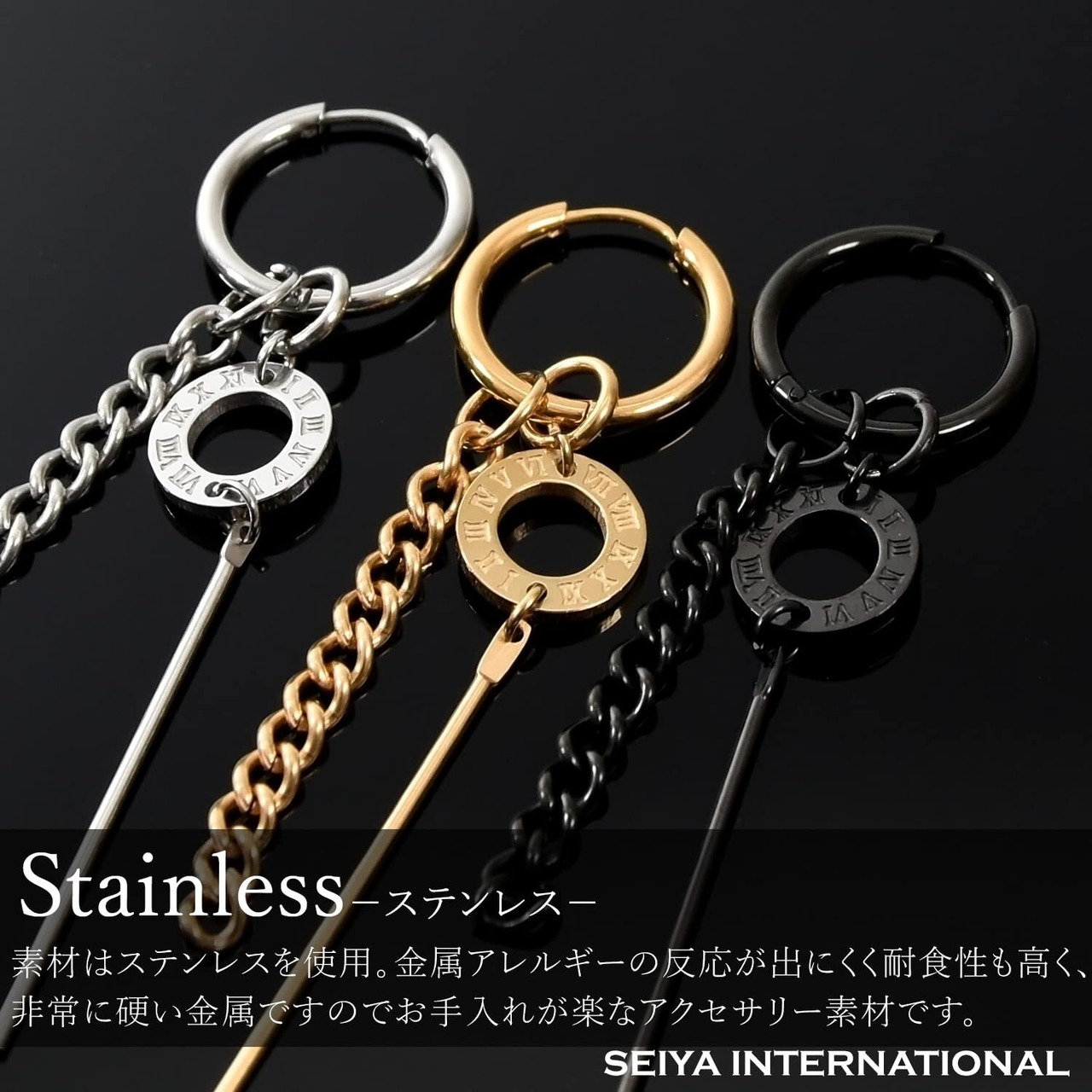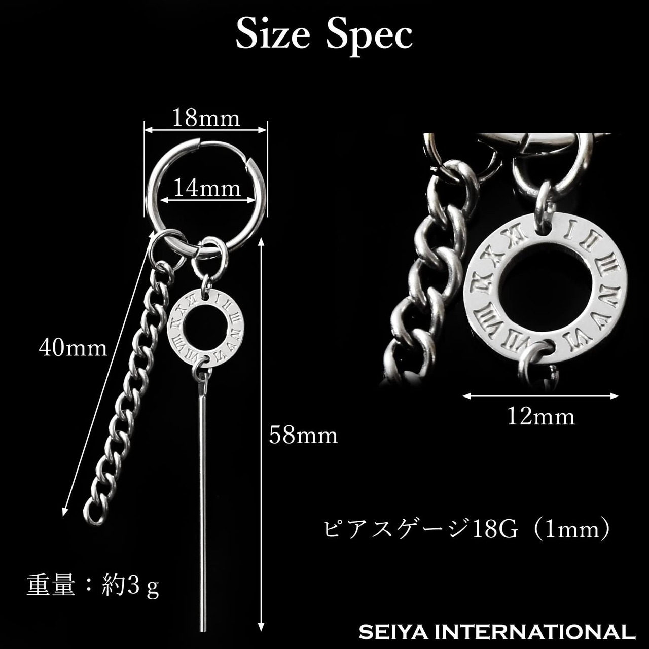 [SEIYA INTERNATIONAL] ピアス メンズ 片耳 フープピアス リングピアス チェーンピアス フープ リング ローマ数字 ステンレス 18G
