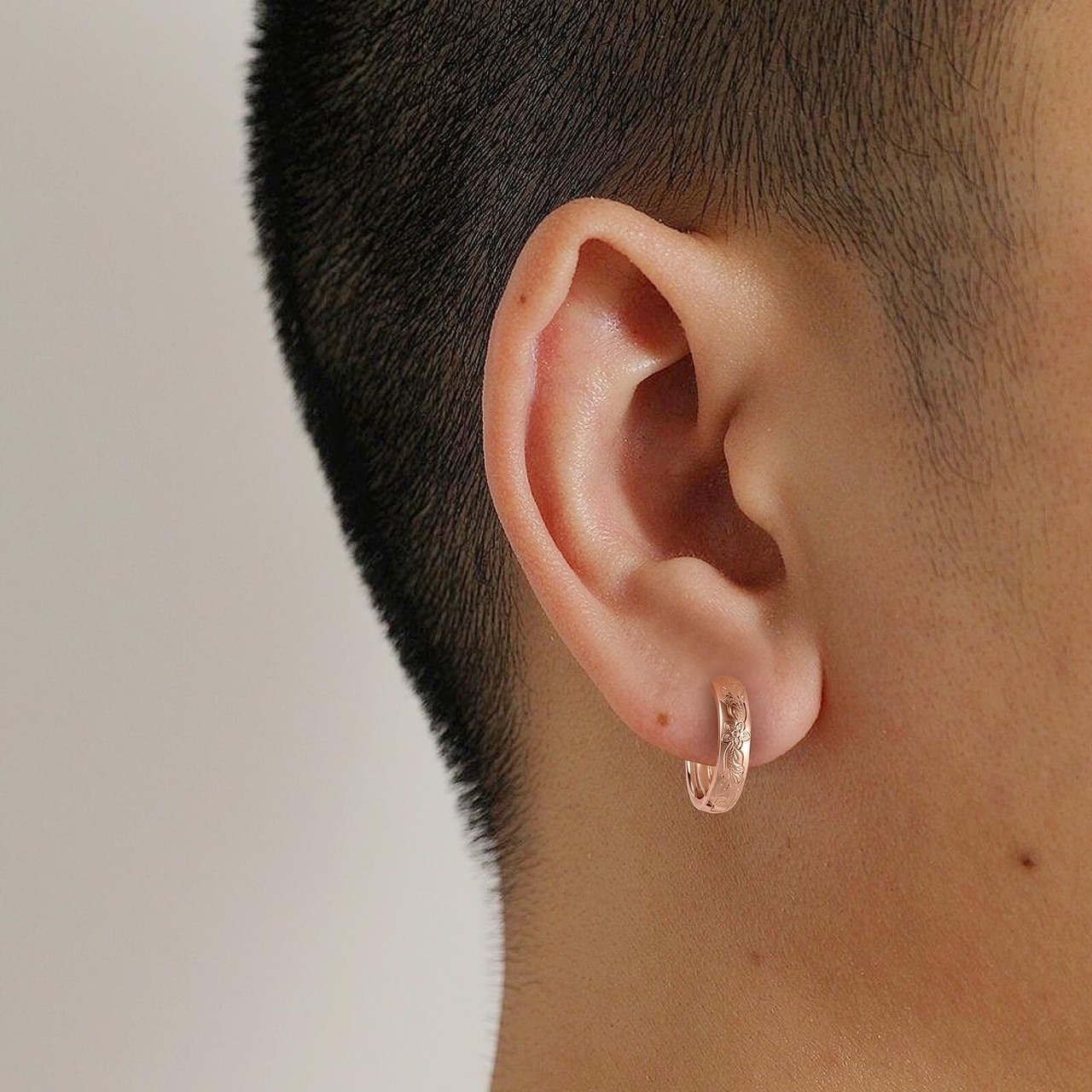 【ハワイアンジュエリー】耳元を華やかに彩るハワイアンジュエリーのフープピアス。安価なステンレス製品とは異なり、まるで手彫りのような繊細な彫刻が施されています。外径15mm・幅3.5mmの程よい大きさと、シンプルなデザインのため、男女年代問わずお使い頂けます。