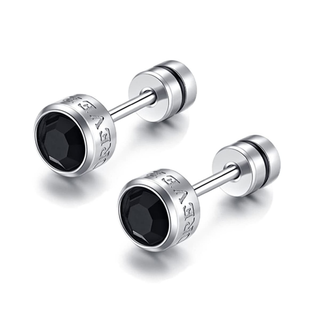 【ピアス】両耳用 材質:チタンステンレス 直径5mm キャッチの色:シルバー 石の色:ブラック 2個セット(1ペア)