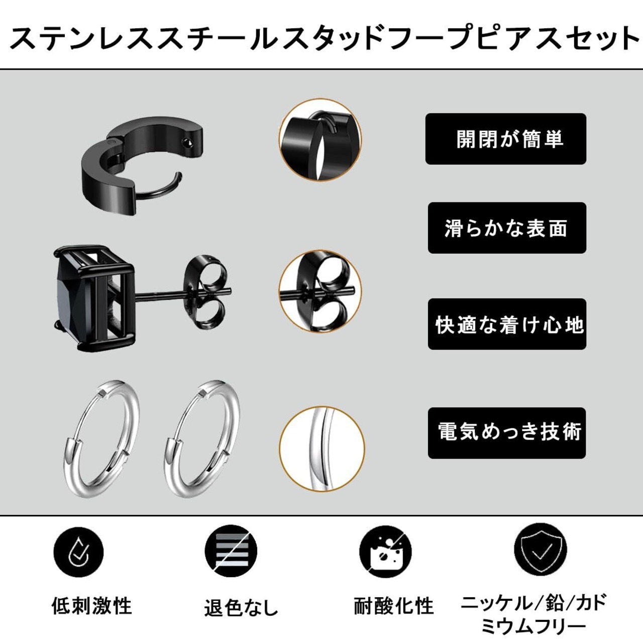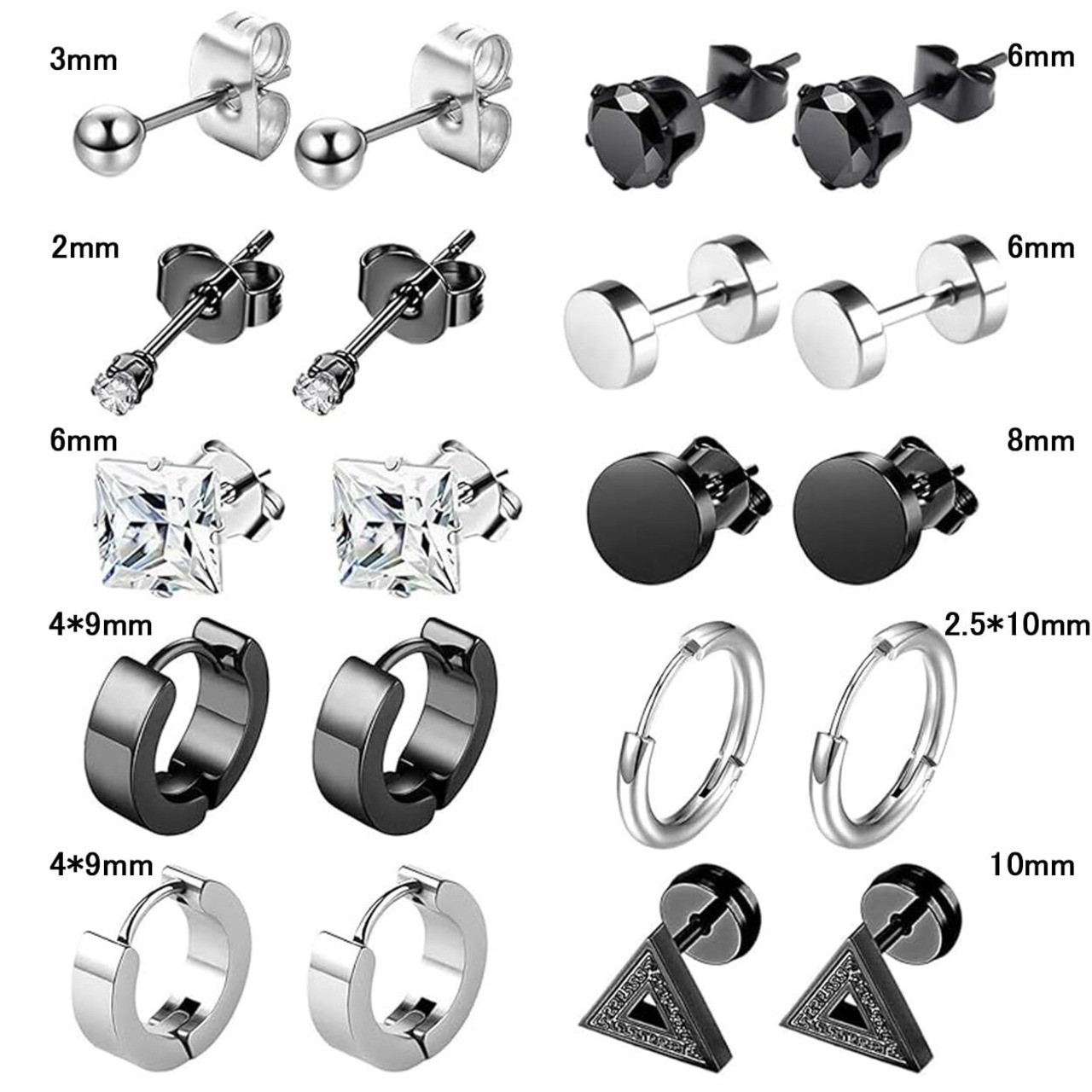 TerraShine ピアス 10ペア 黒ピアス イヤリング スタッドピアス フープ 両耳用 シンプルデザイン 金属アレルギー対応 日常 メンズ レディース ステンレス製