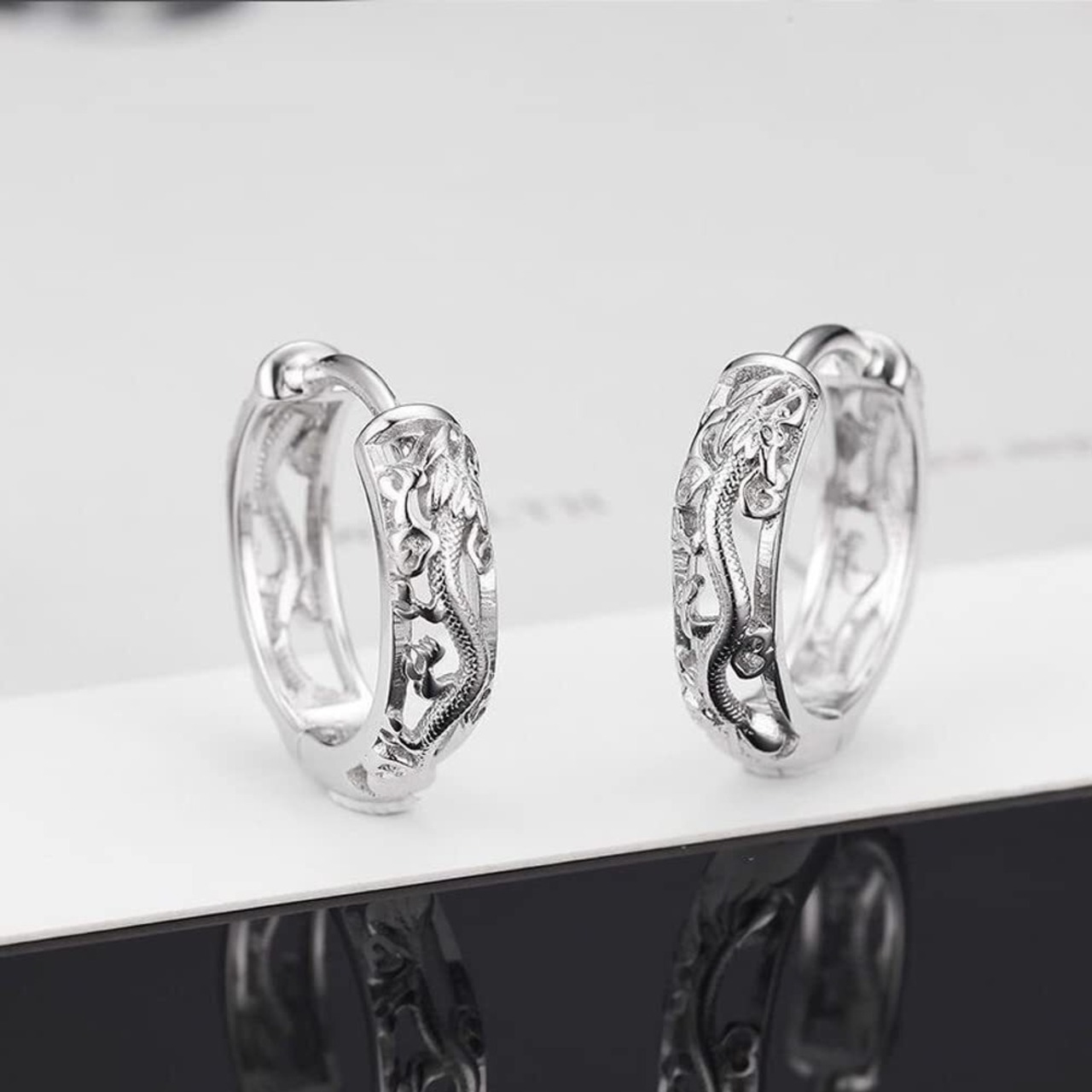 【優れた龍デザイン】 シンプルで着用しやすいデザイン、派手過ぎず、地味過ぎない、ちょうど良い存在感が魅力のドラゴンピアスです。普段使いでもフォーマルでも大活躍する、人気のフープピアスです。
