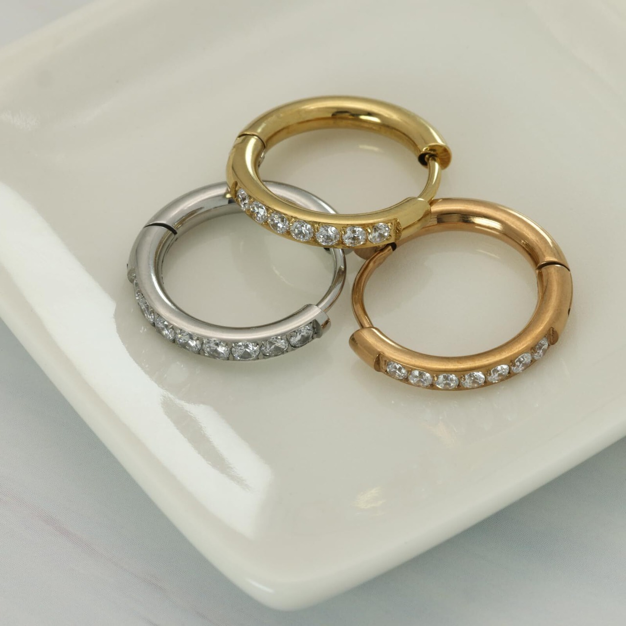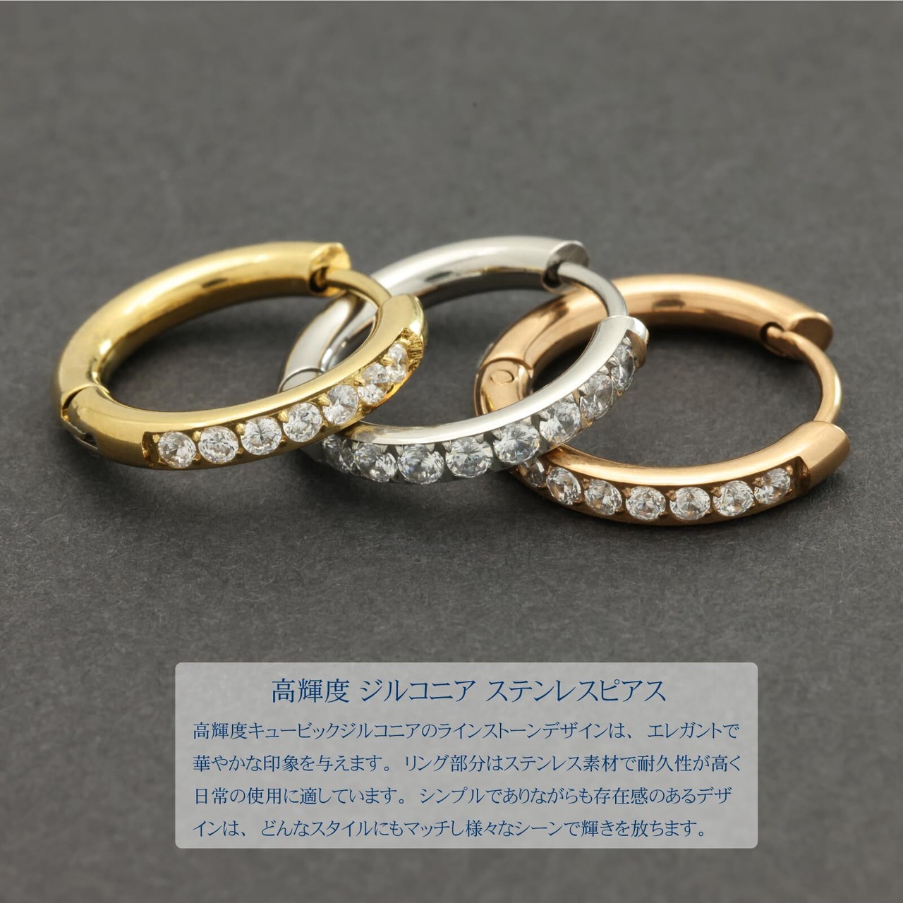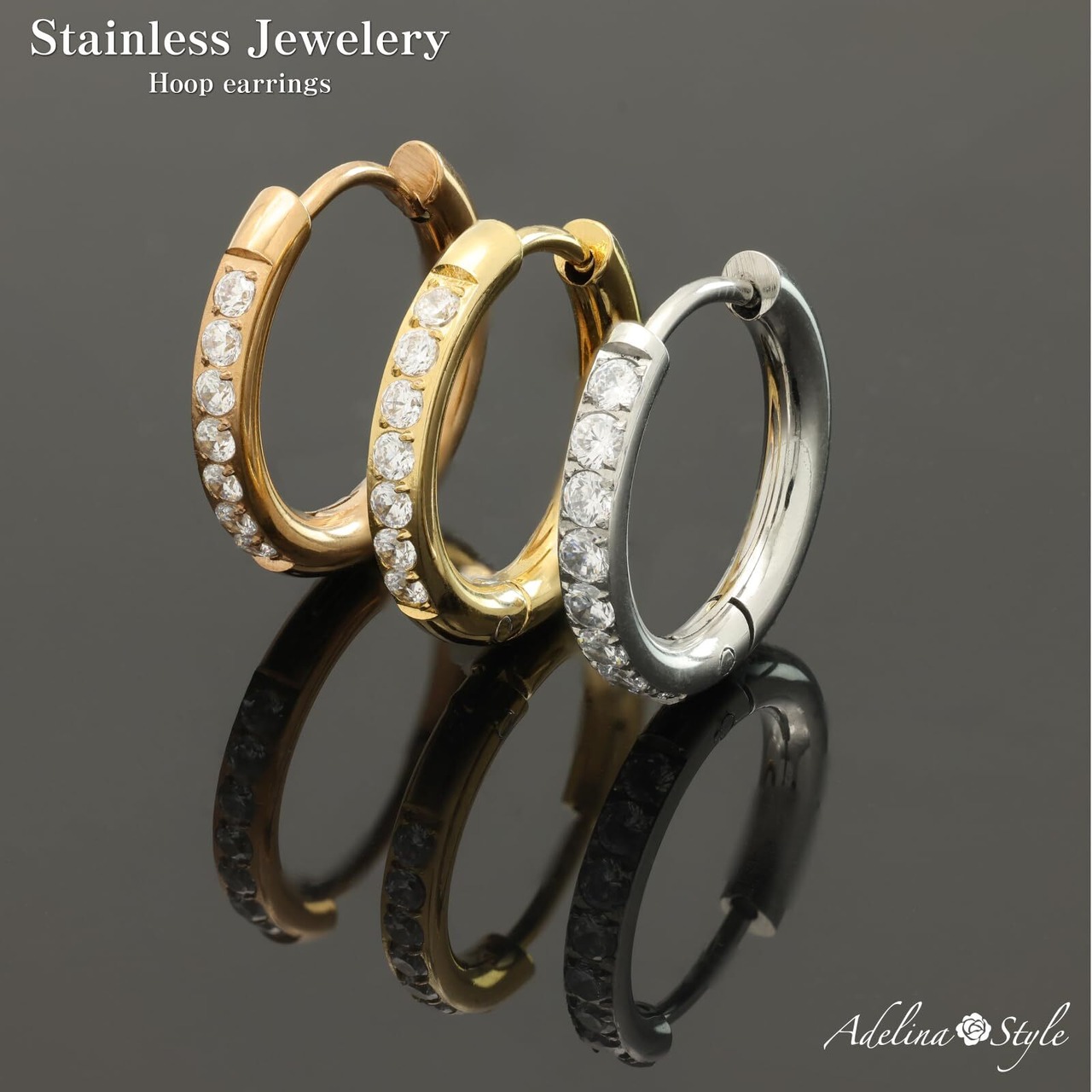 [Adelina Style] フープピアス 人気 幅2.5mm つけっぱなし ラインストーン キュービックジルコニア 18G 1ペア メンズ レディース リング ピアス サージカルステンレス 金属アレルギー対応 両耳