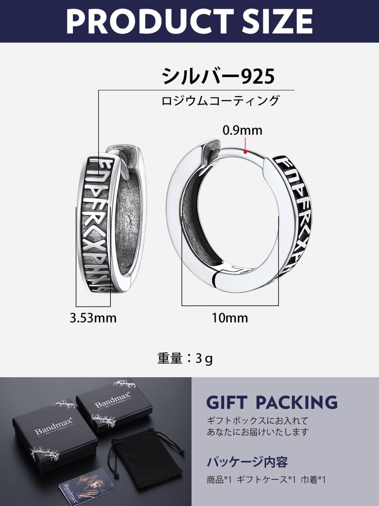 Bandmax リングピアス シルバー925 小さめ つけっぽなし 金属アレルギー対応 メンズ レディース フープピアス 内径10mm シンプル 両耳 アクセサリー