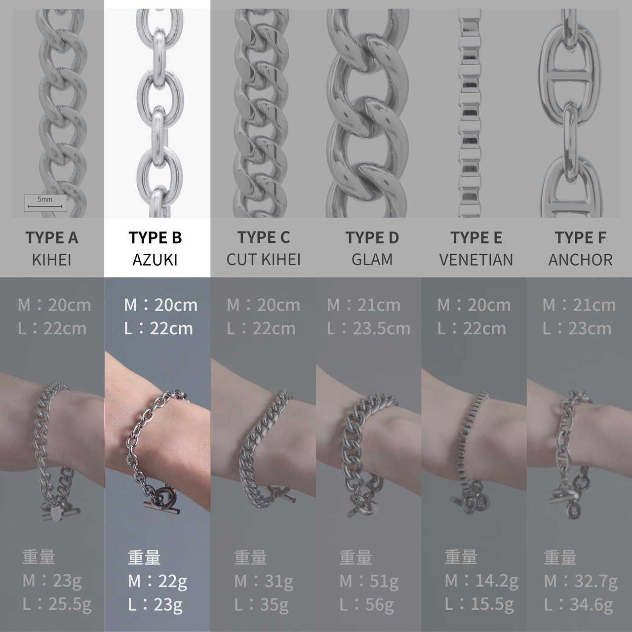 [ライオンハート] ブレスレット メンズ ヴァリアスチェーンブレスレット サージカルステンレス (金属アレルギー対応) /TYPE“B”AZUKI Mサイズ 20cm 03BR0015SB