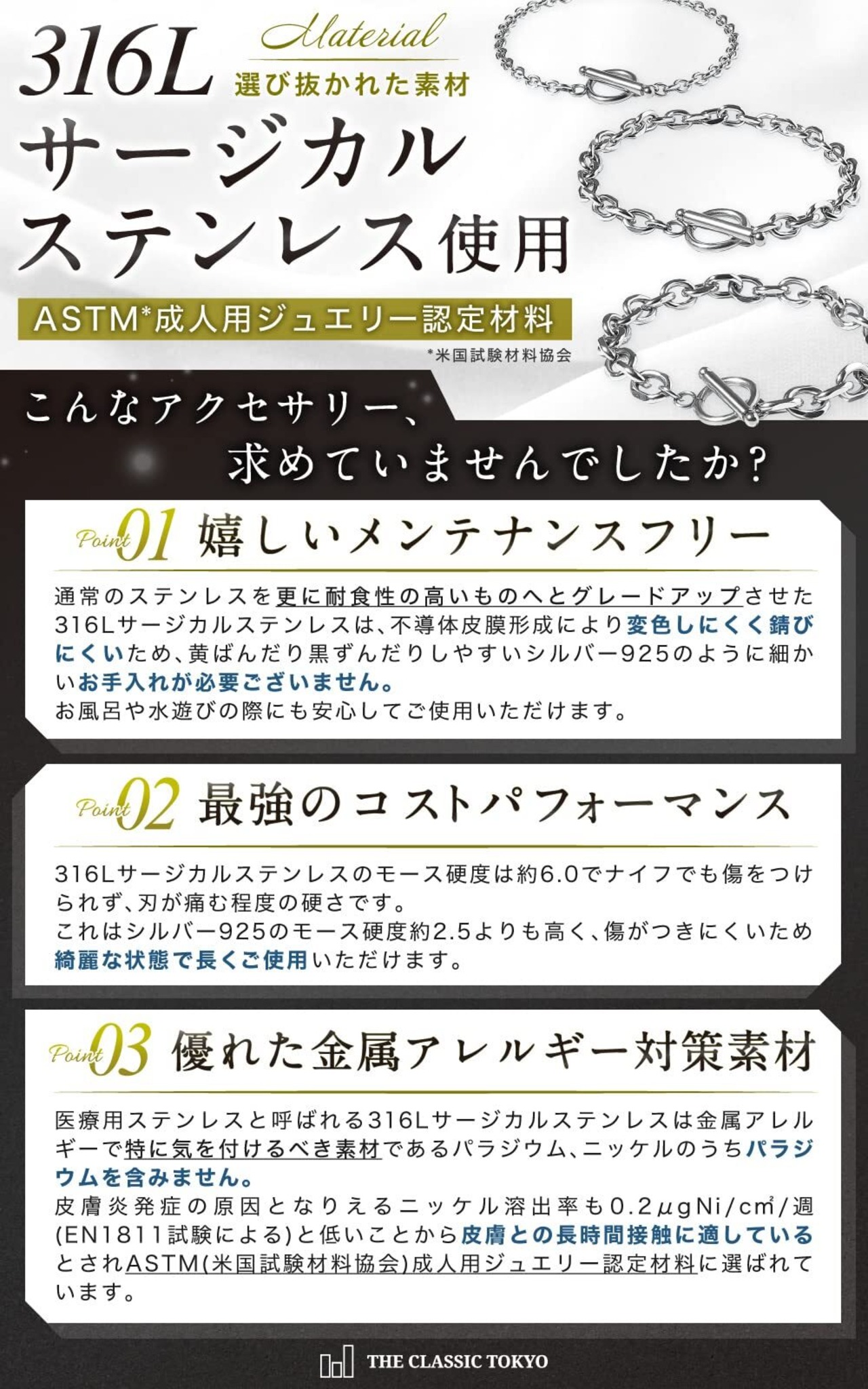 [THE CLASSIC TOKYO] 【現役皮膚科医監修】 金属アレルギー対応 316Lサージカルステンレス マンテルチェーン ブレスレット メンズ シルバー