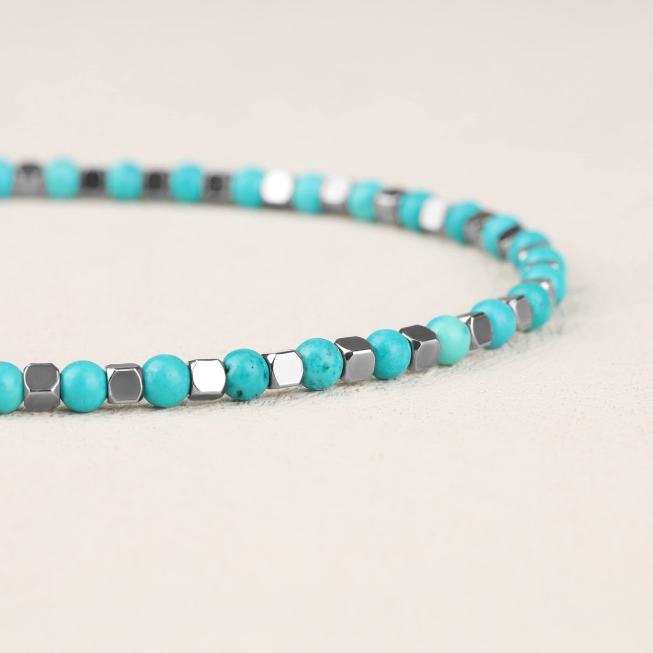 心を込めて作られたターコイズブレスレットで、細身のデザインで、単品で付けてもいいし、他のブレスレットとの重ね着けなどもオススメです