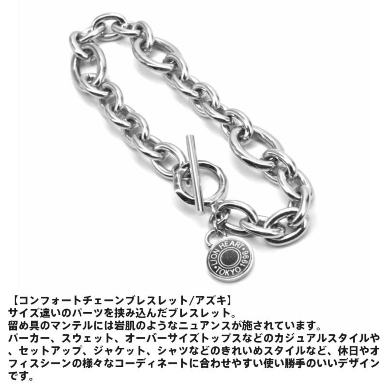 [ライオンハート] ラッピング済 コンフォート チェーンブレスレット アズキ サージカルステンレス シルバー 金属アレルギー対応 別注ポーチ付き メンズ ブランド