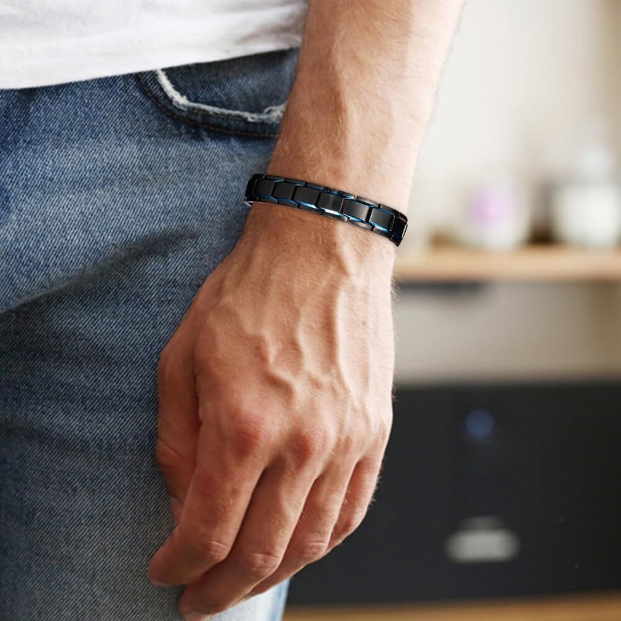 [QIAOZILI] 静電気除去 ブレスレット 磁気ブレスレットメンズ 人気 優しくて肌に優しい チタン鋼 腕輪 健康 サイズ調整可能 健康 金属アレルギー対応 人気ファッション 誕生日プレゼント 専用ギフトボックス