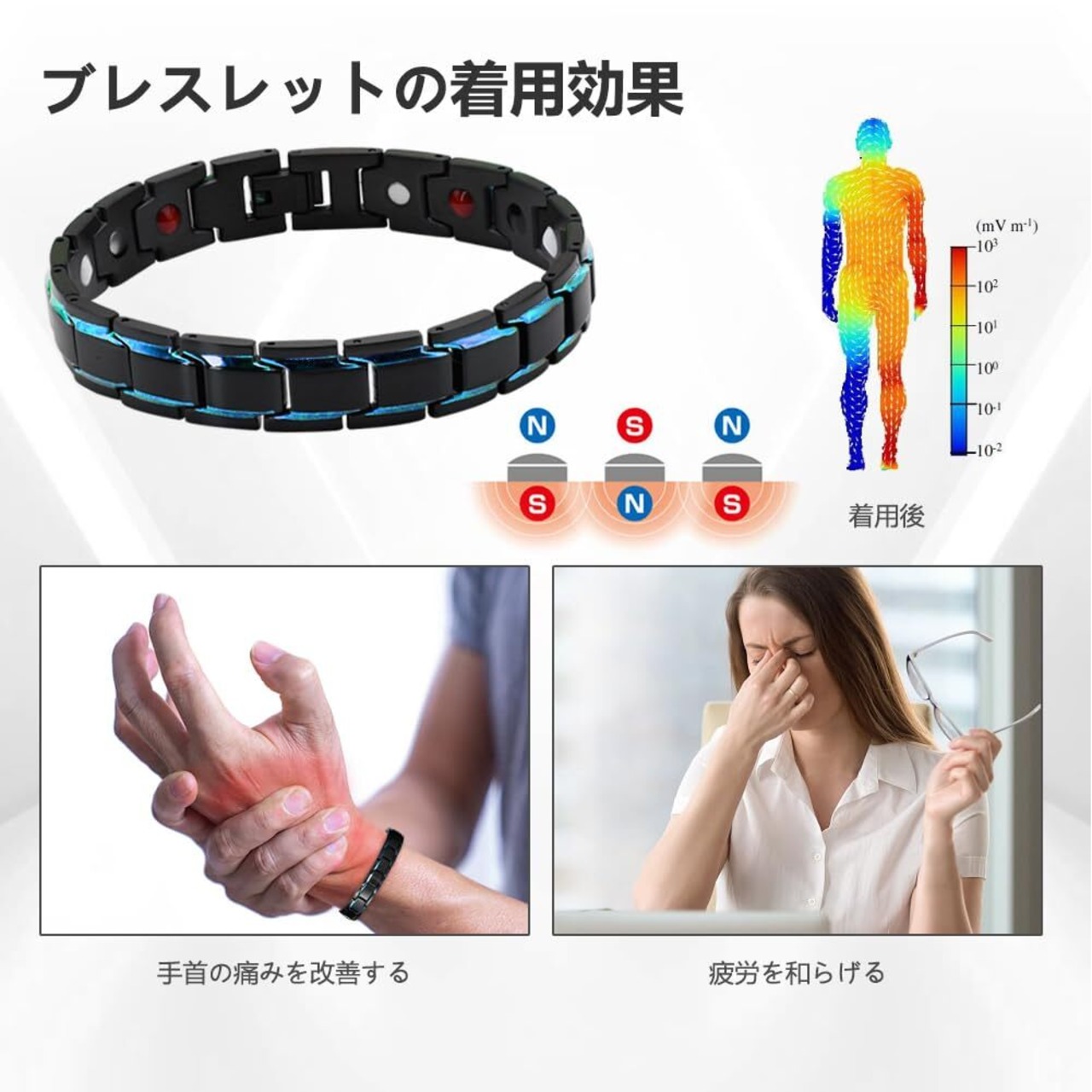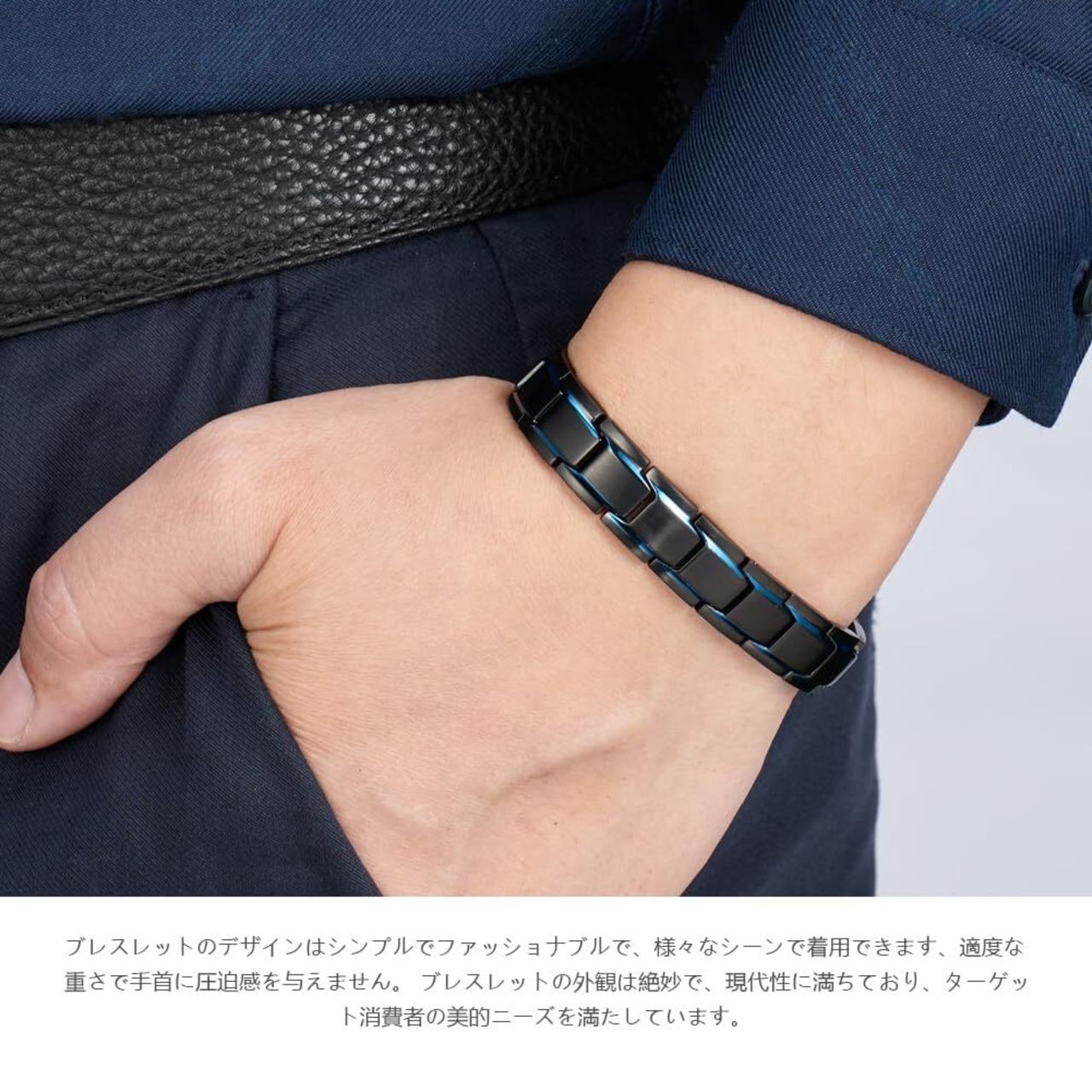 【健康効果】: この磁気ブレスレットは静電気を除去する機能に加え、特殊な磁気設計を採用しています。 磁場は人間の健康に良い影響を与え、このブレスレットを身に着けることでより良い健康を維持することができます。