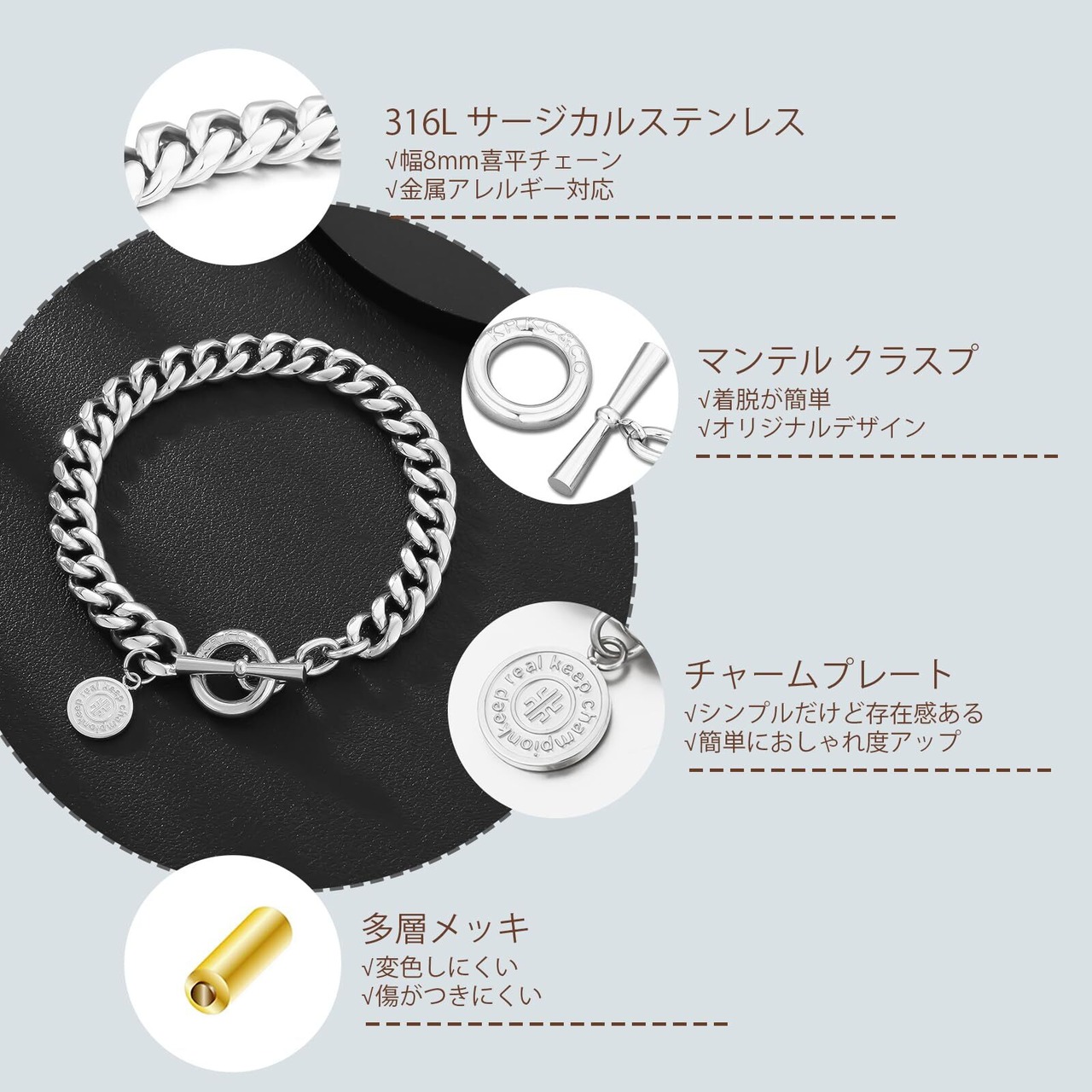 【しっかりした作り】素材には丈夫で耐久性に優れたサージカルステンレスを使用しています。ステンレスは錆びにくく傷がつきにくい上、汗や水にも強く特別なお手入れも不要です。シルバー素材や合金素材の色の変化が気になる方にもおすすめです。