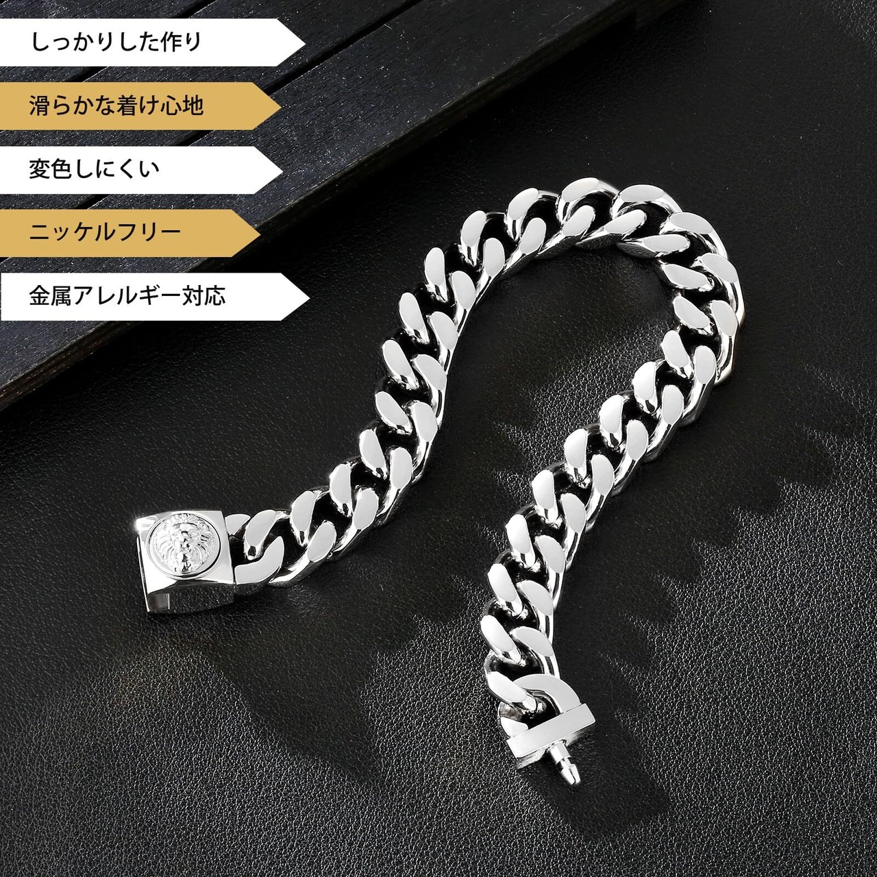 KRKC&CO メンズブレスレット 喜平ブレス サージカルステンレス 12mm ライオン/スカル デザイン留め具 差し込み式 4面カット K18金メッキ ヒップホップ B系 ストリート アクセサリー 男性 プレゼント