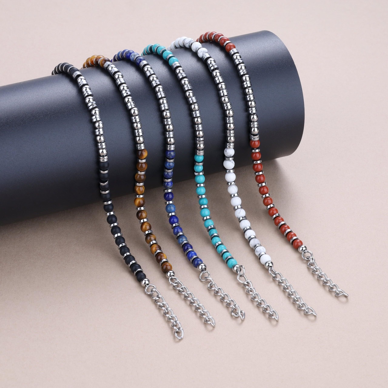 サイズ:4mmターコイズ 4mmヘマタイト 4*1mmステンレスビーズ 長さ19cm+3cm(アジャスター)