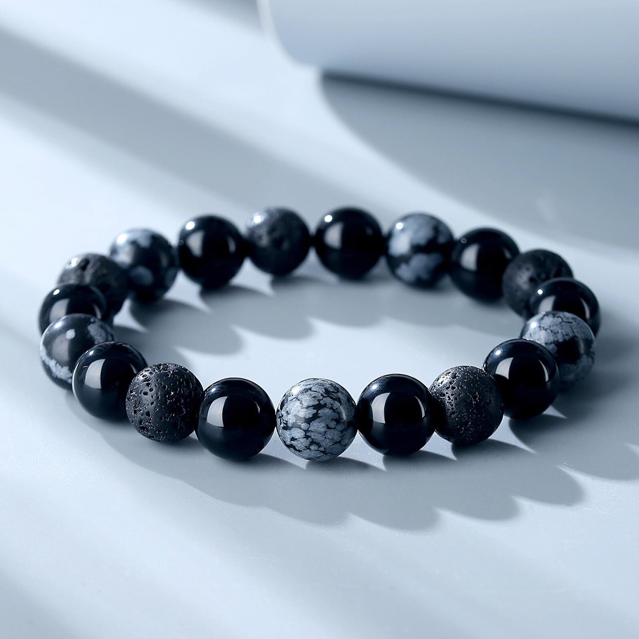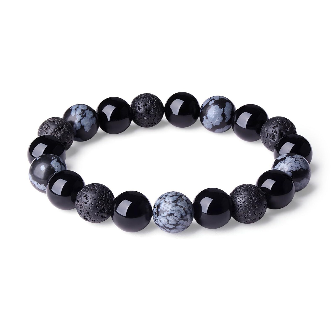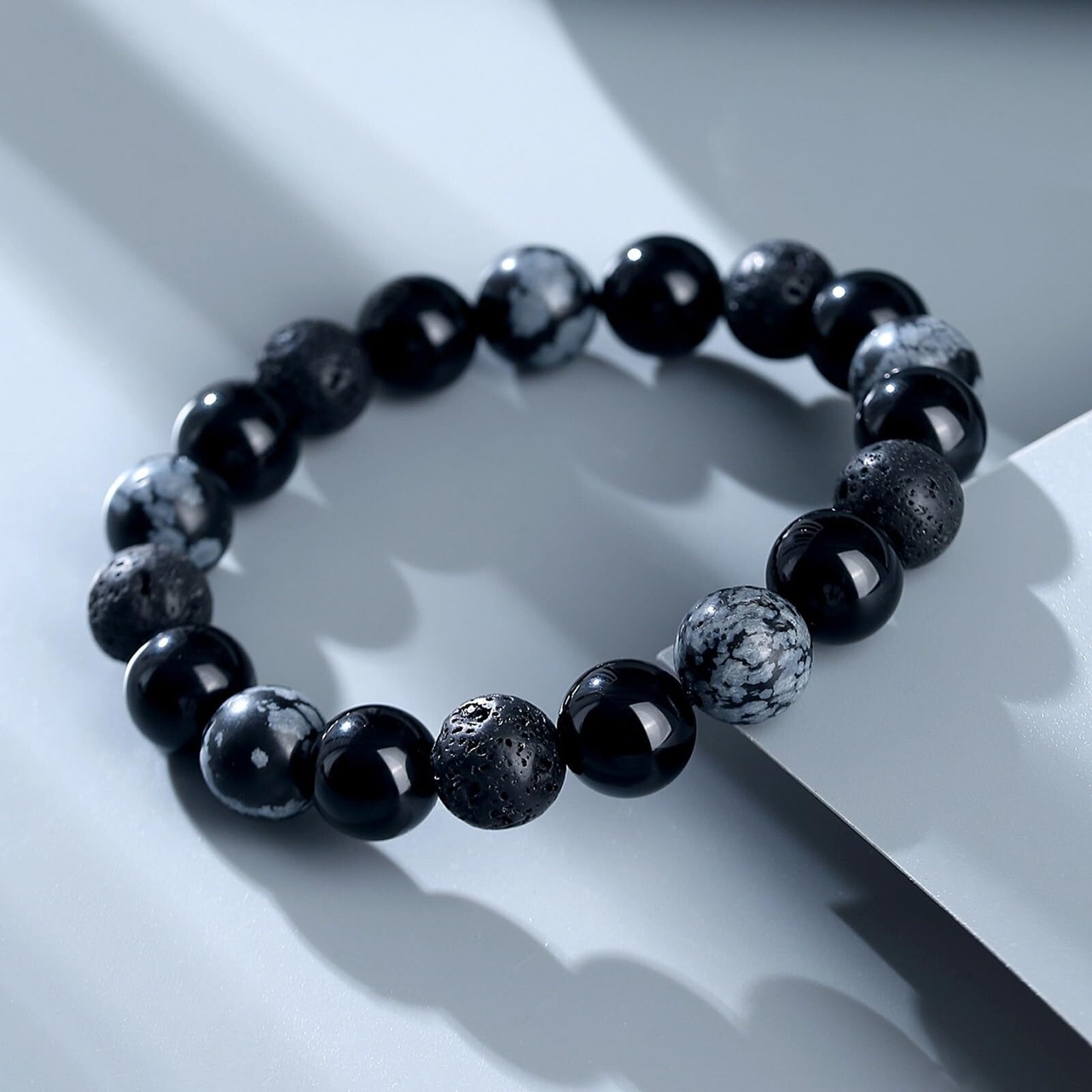 【商品仕様】商品名:宇宙開運ブレスレット,手首周りサイズ:19.5cm(調整可能),素材:黒曜石/火山石/黒曜雪花石,工芸:砥石、編む,重さ:約27.3g,※サイズは多少誤差がある場合がございますので予めご了承ください。