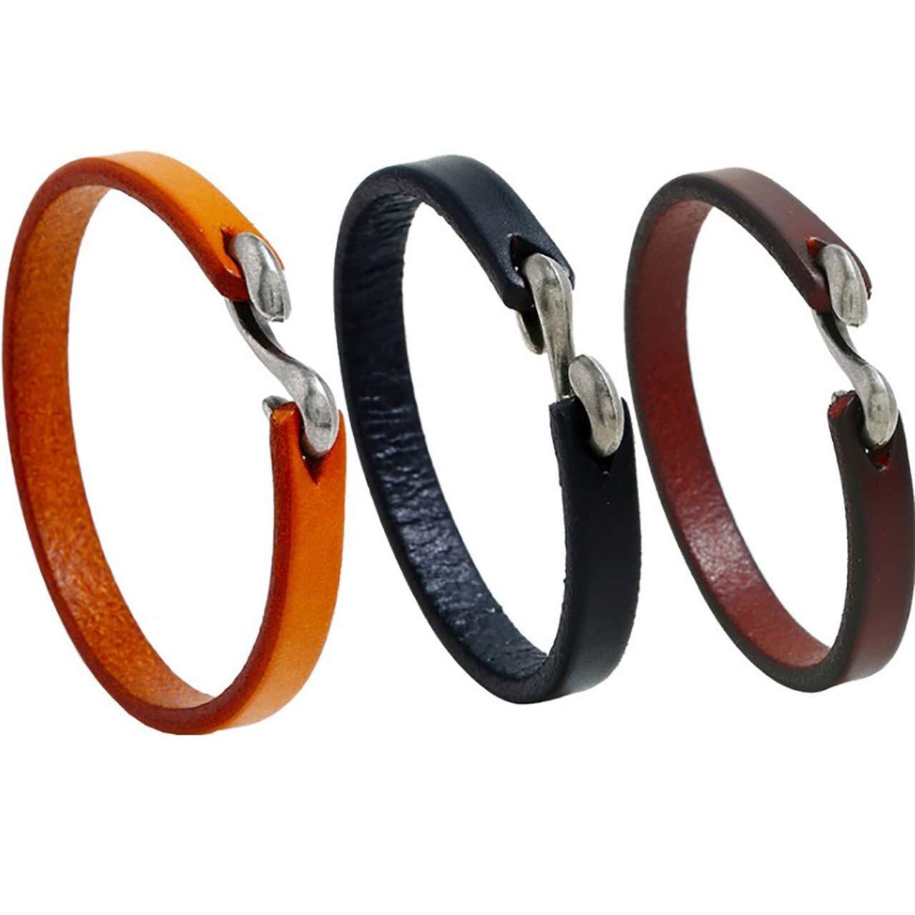 本革 牛革 だから使い込むほど味が出て腕になじむ フック タイプの シンプルで おしゃれな メンズ レザー ブレスレット。
